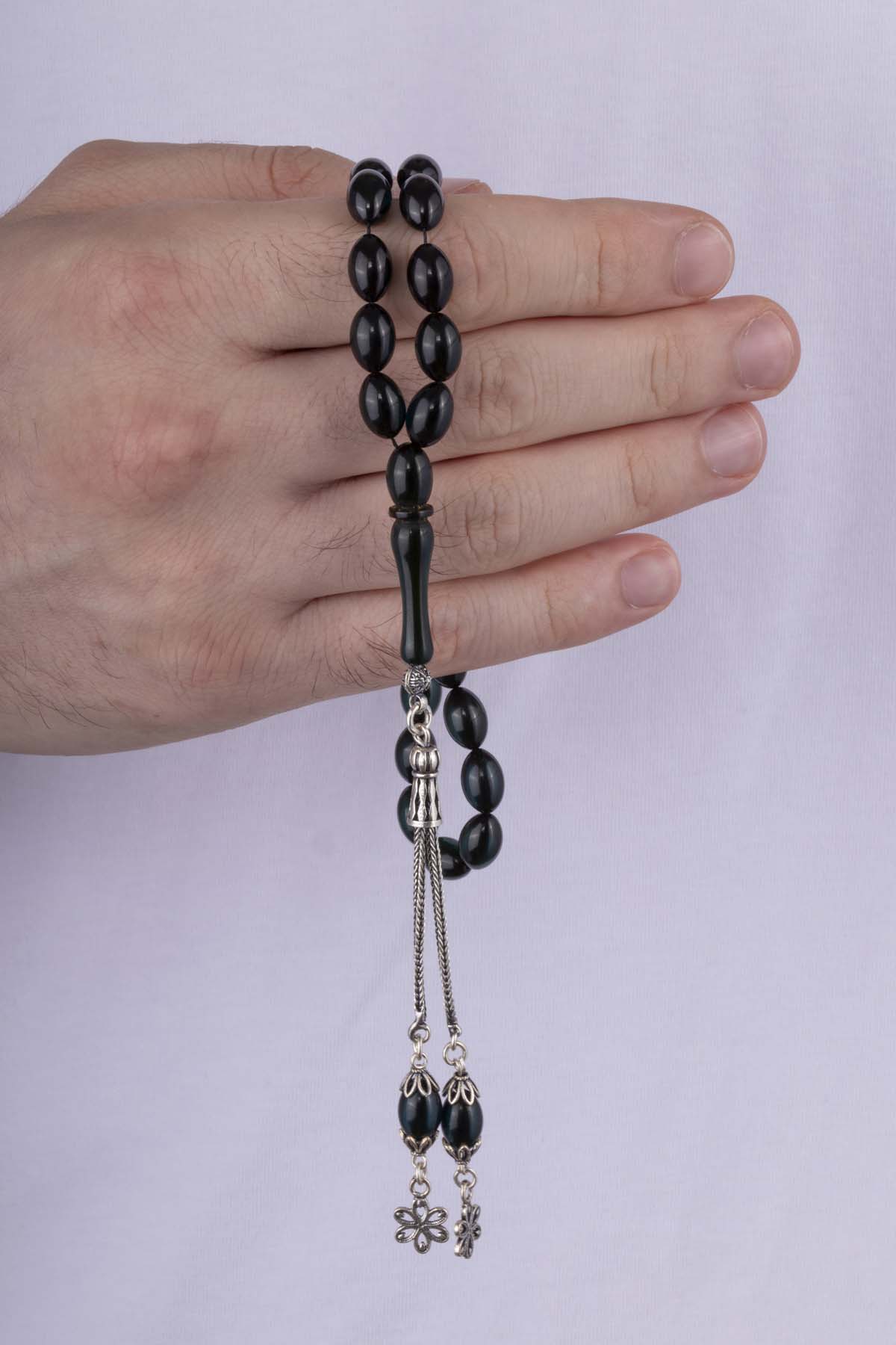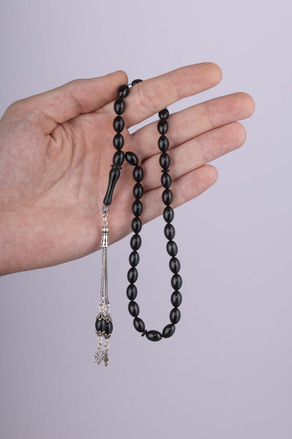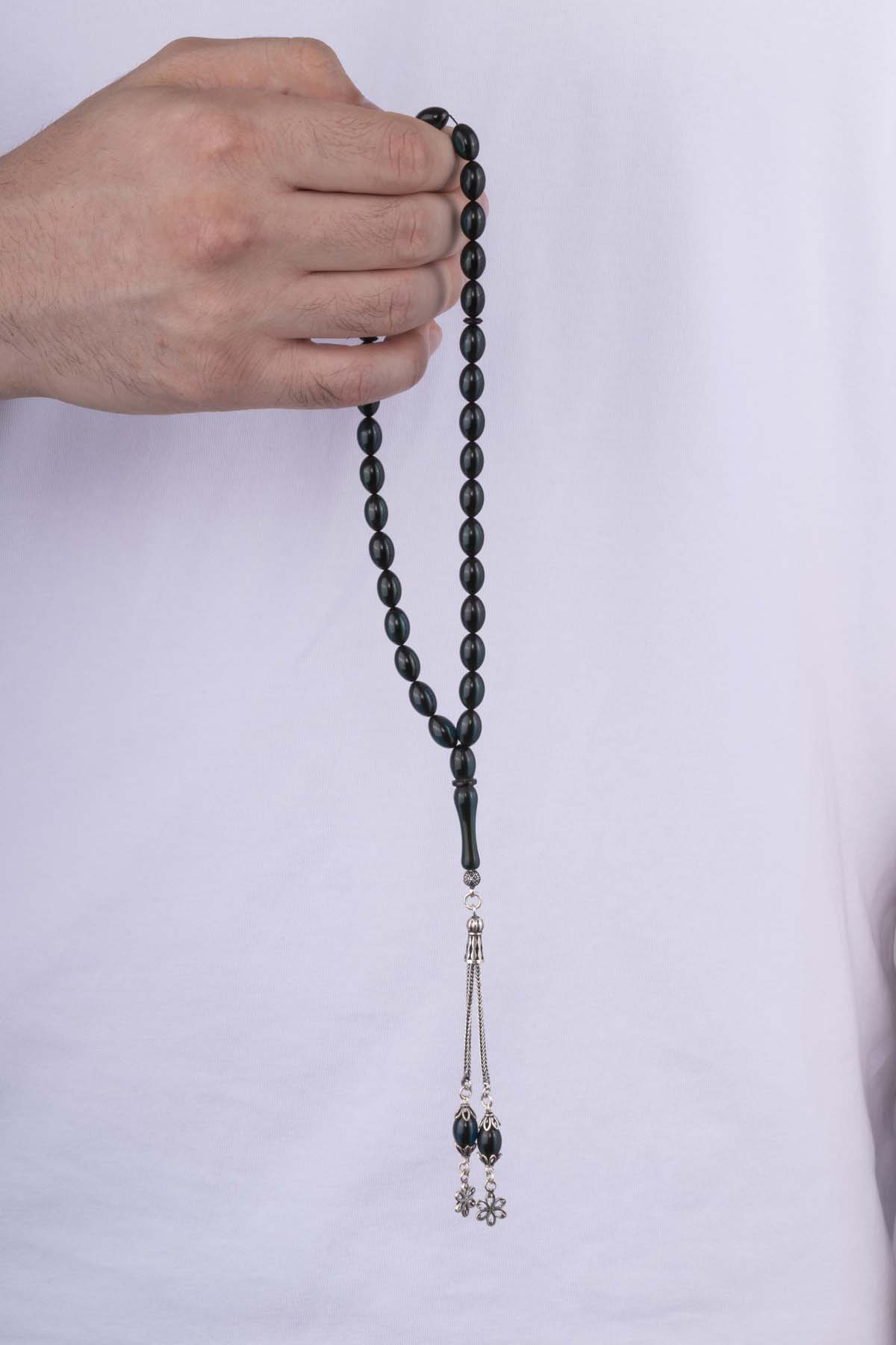 Beyzi Kesim Koyu Renk Gümüş İmameli Kehribar Tesbih - 4