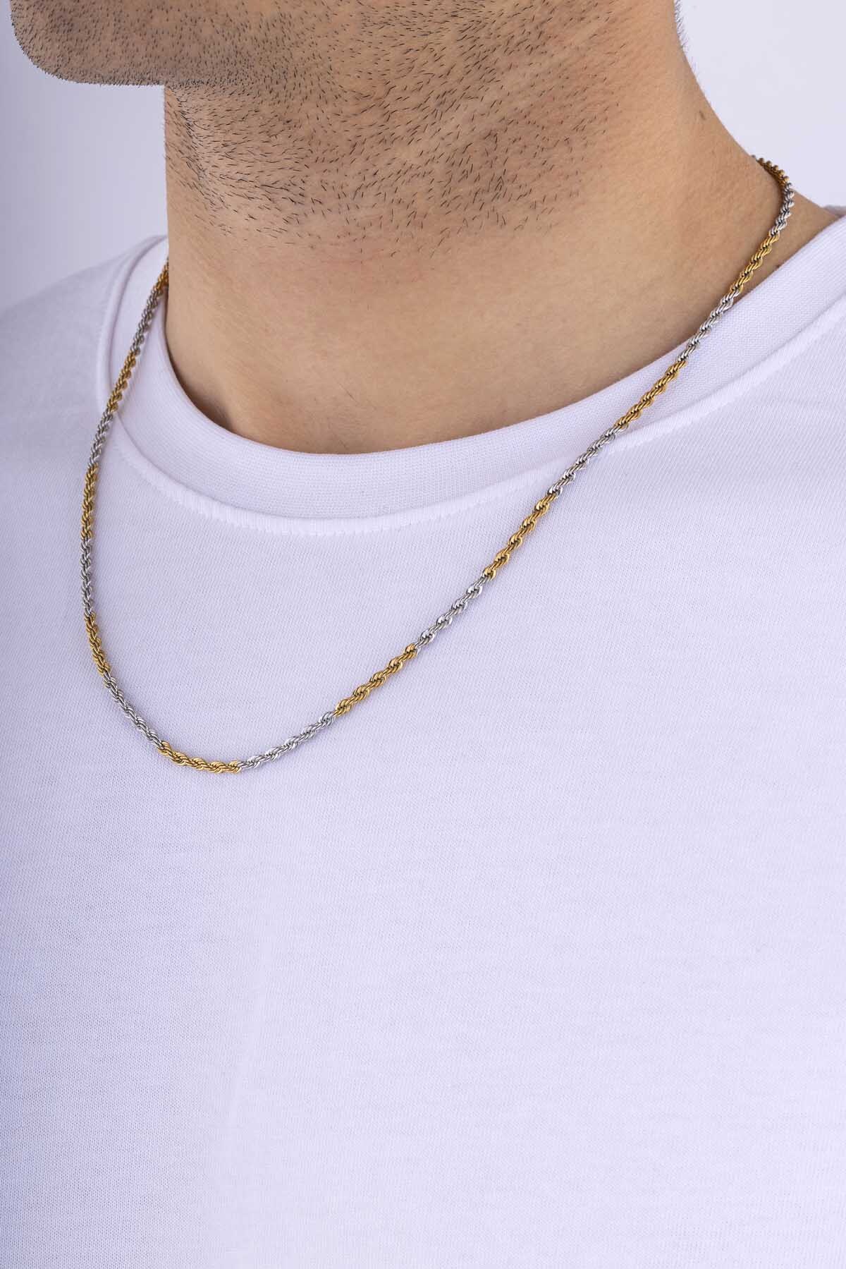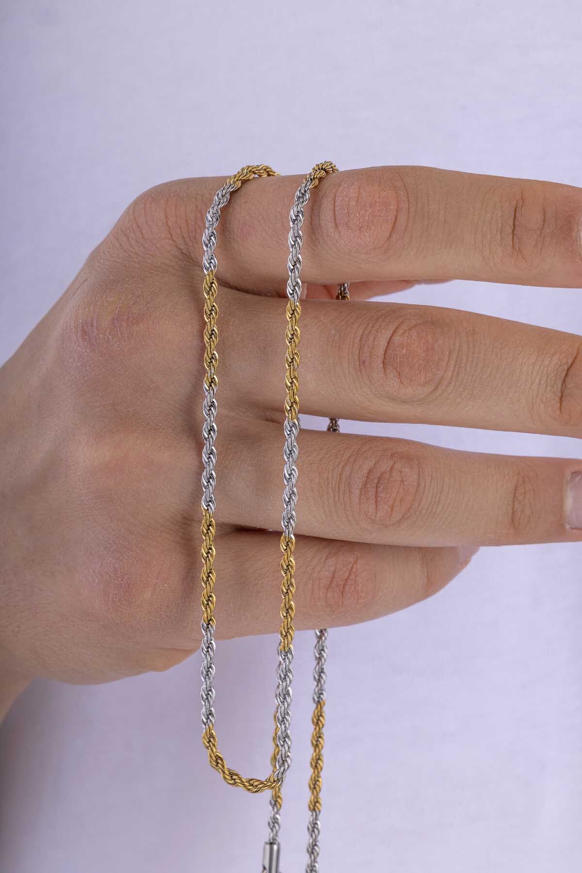 Gelince Haber VerBurgu Model Çift Renk Altın Kaplama Erkek Çelik Zincir, maskülen tarzı modern detaylarla buluşturan üst segment bir tasarım sunar. Altın kaplama ve gümüş tonların bir arada kullanıldığı bu çift renkli yapı, zincire hem özgün bir görünüm hem de güçlü bir stil karakteri kazandırır. Örgü formundaki burgu tasarım, zincirin yüzeyinde belirgin bir derinlik ve sofistike bir parlaklık yaratırken, ışığı çok yönlü yansıtarak dikkat çekici bir duruş sergiler.