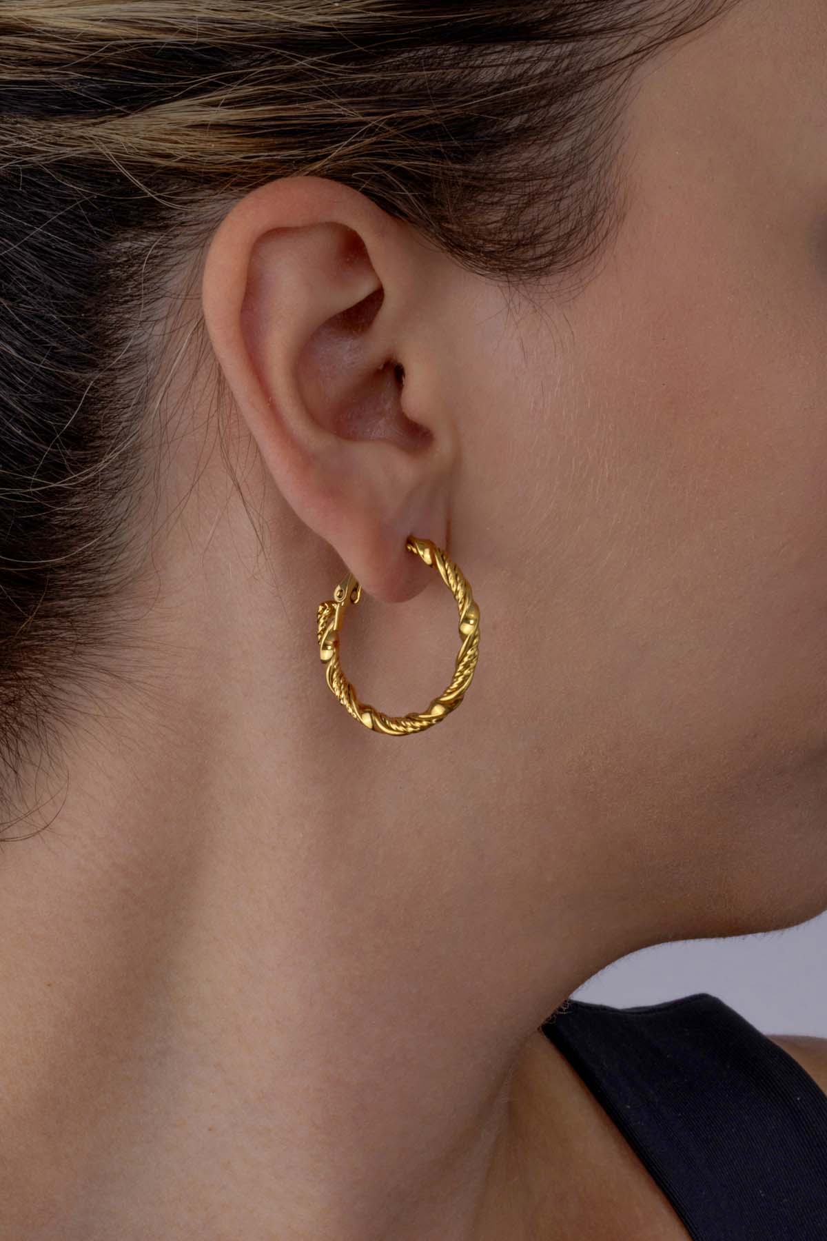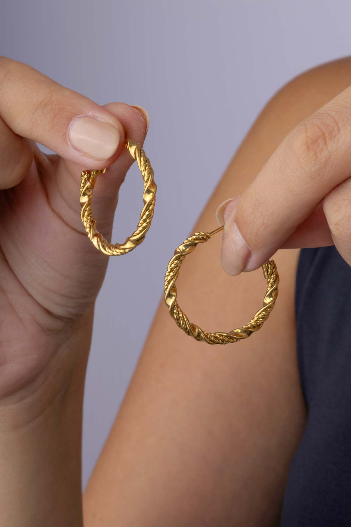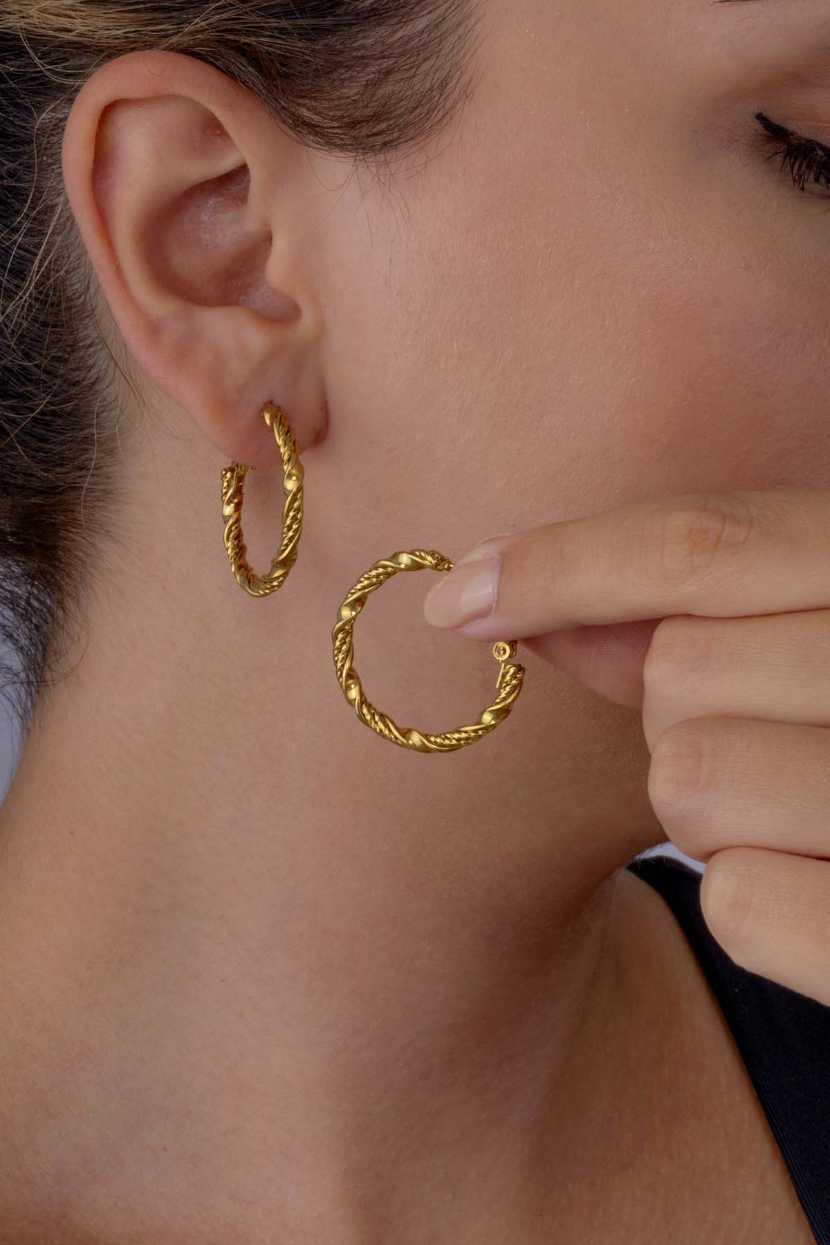 Altın Kaplama Burgu Model Halka Çelik Küpe - 1