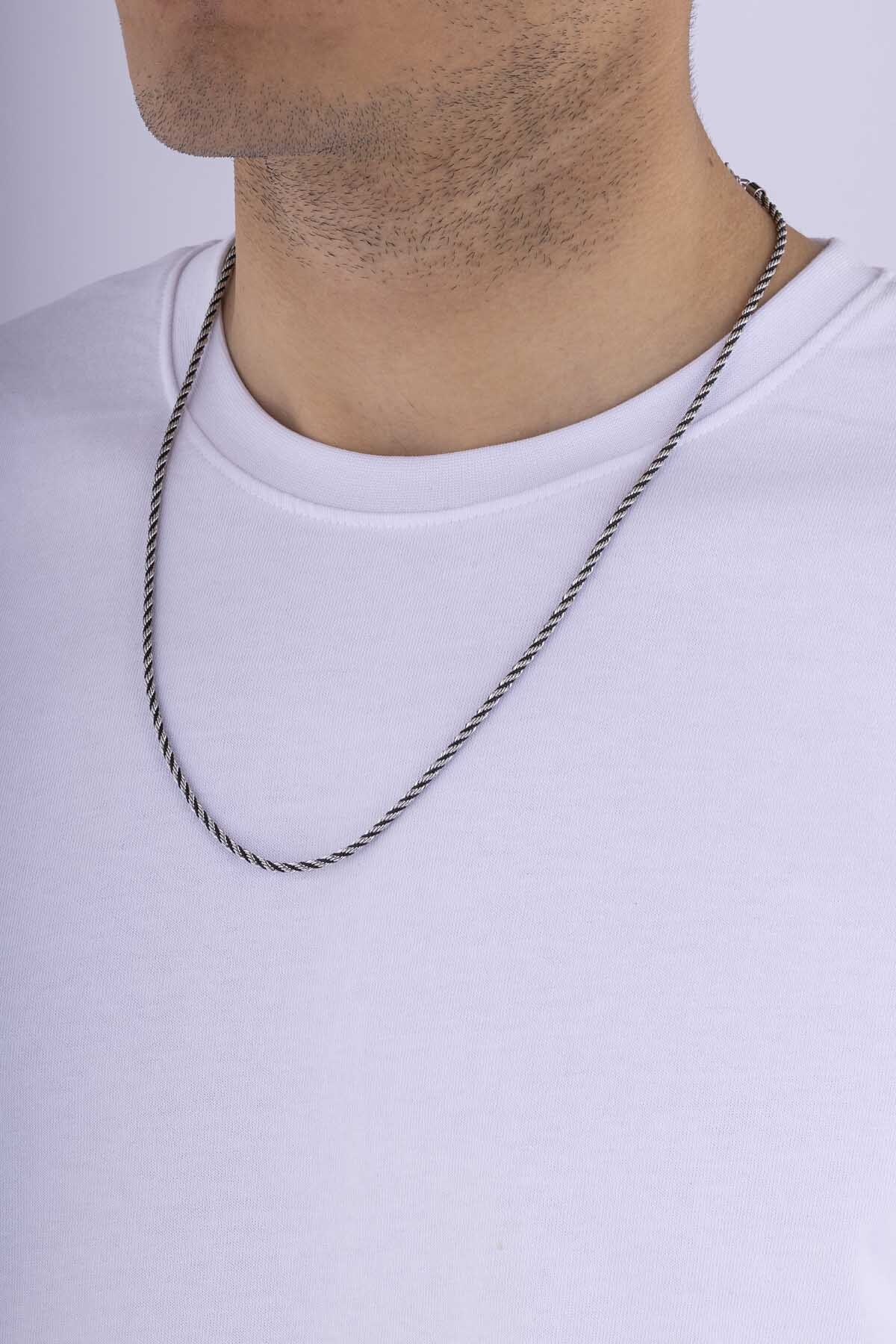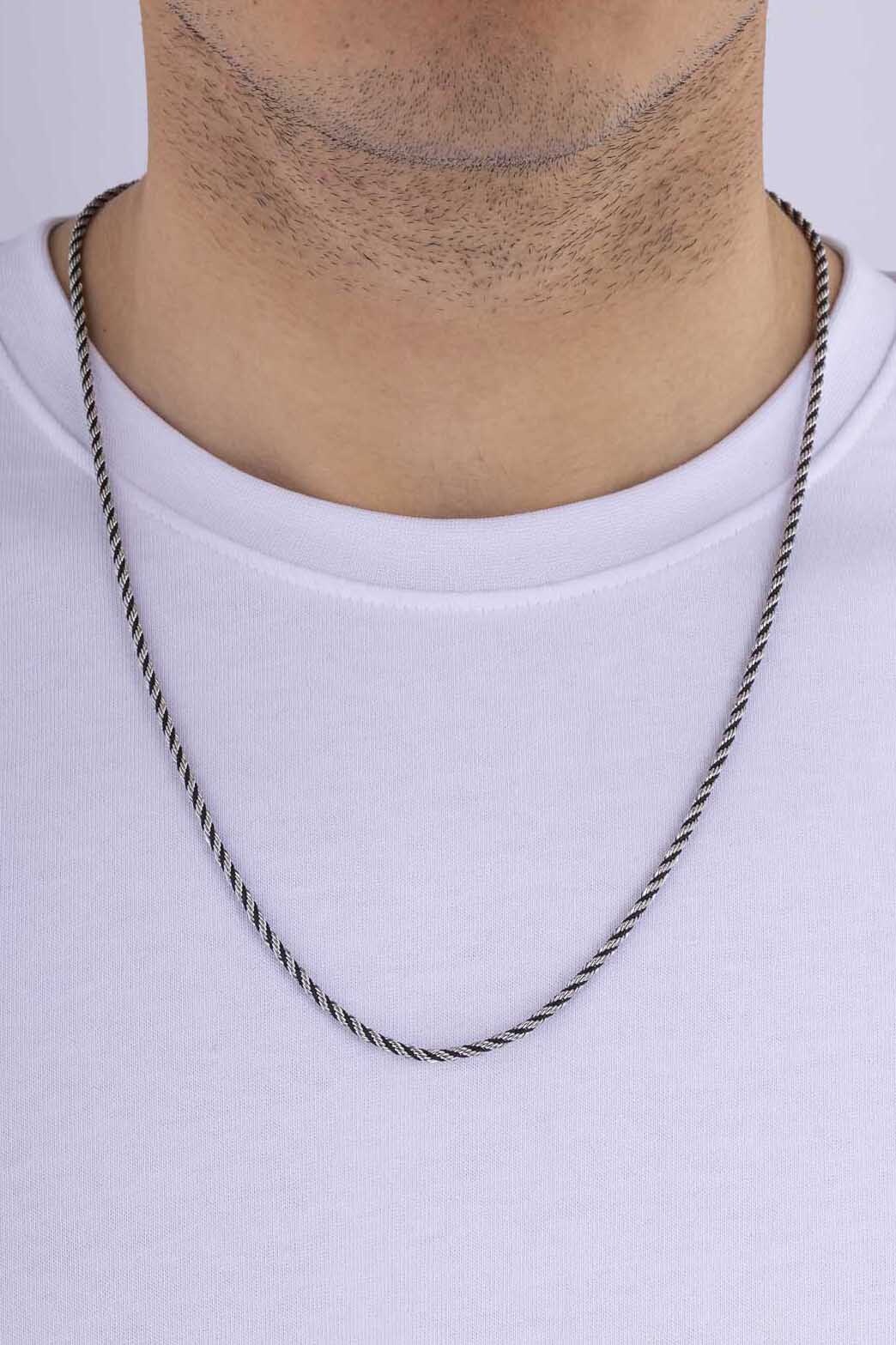 Burgu model siyah geçişli çelik erkek zincir, dayanıklı yapısı ve modern tasarım çizgileriyle günlük kullanımda şık ve karakteristik bir görünüm sunar.