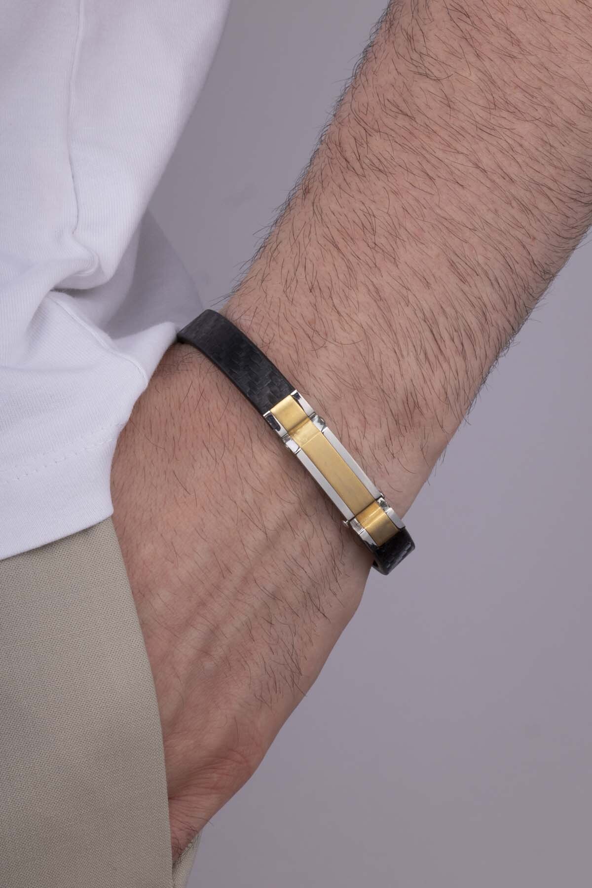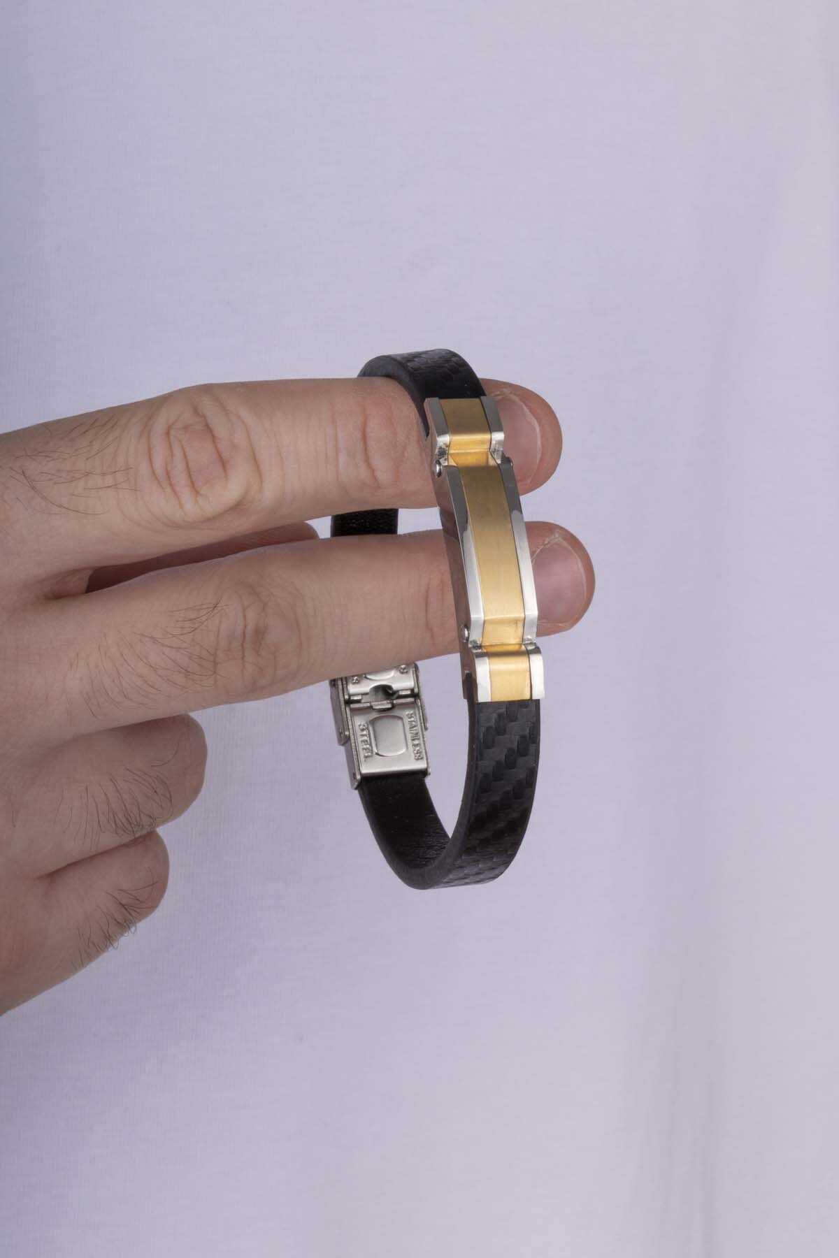 Çelik Aparatlı Çift Renk Altın Kaplama Erkek Deri Bileklik - Gümüş Pazarım Çelik Aparatlı Çift Renk Altın Kaplama Erkek Deri Bileklik - Gümüş Pazarım (1)