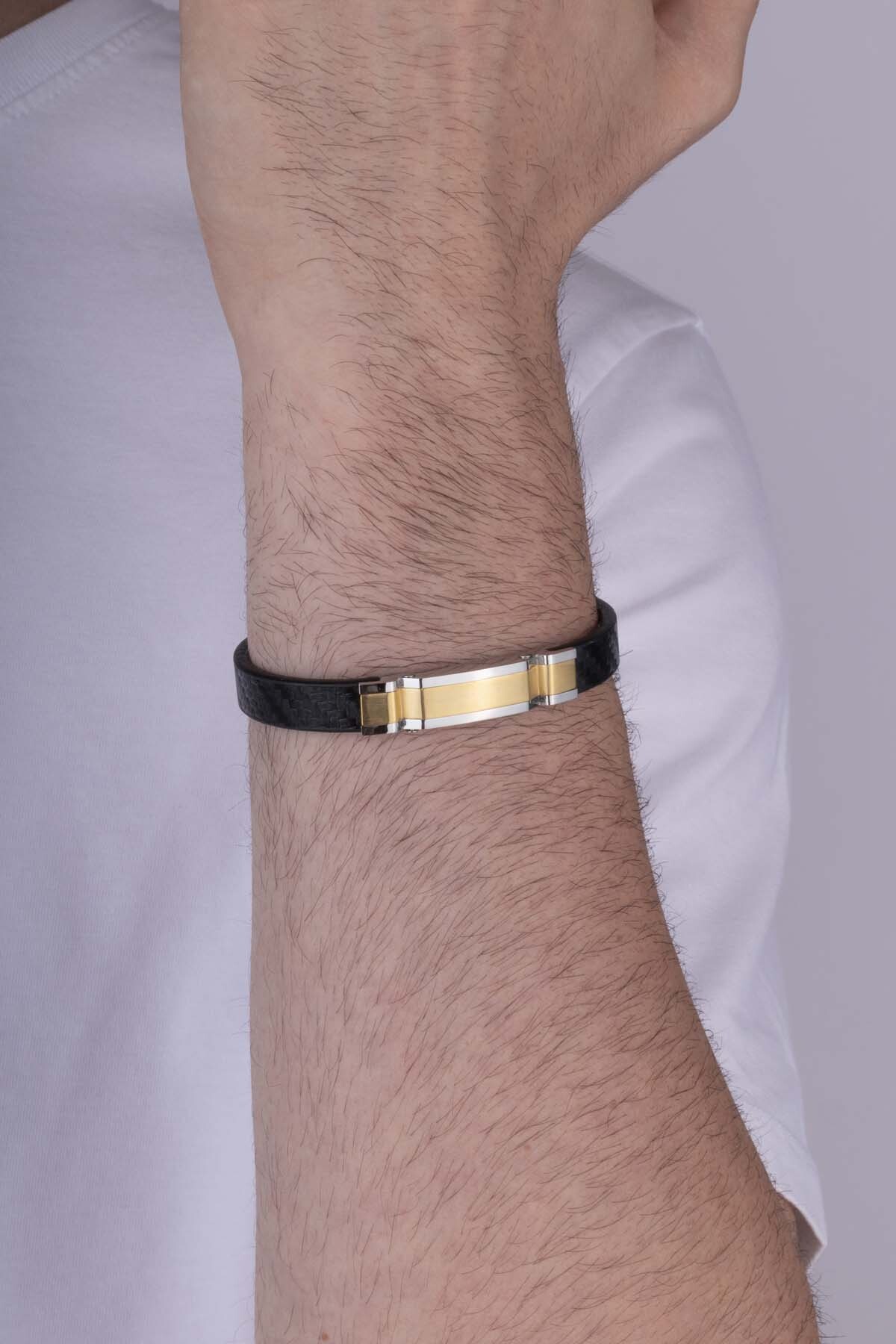 Altın ve gümüş detaylı çelik aparat tasarımıyla bu siyah deri bileklik, modern ve şık görünümüyle stilinizi güçlendirir. Hediye için de ideal bir tercihtir.