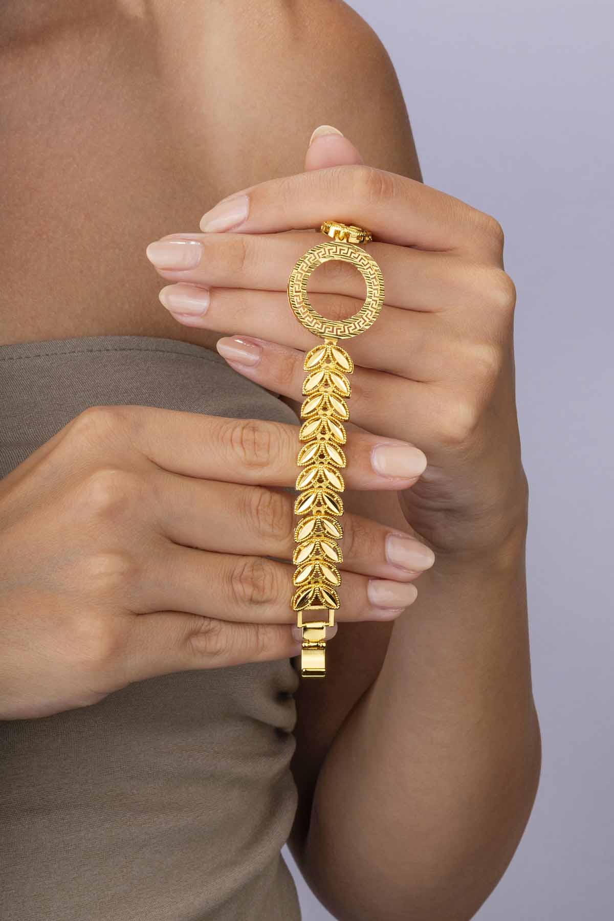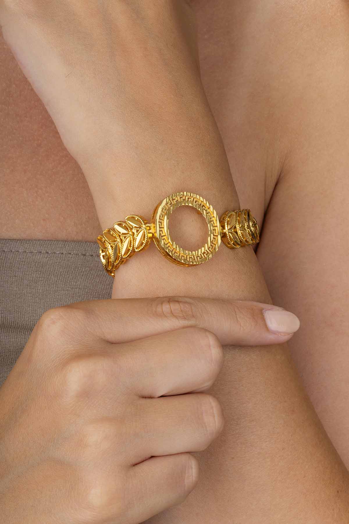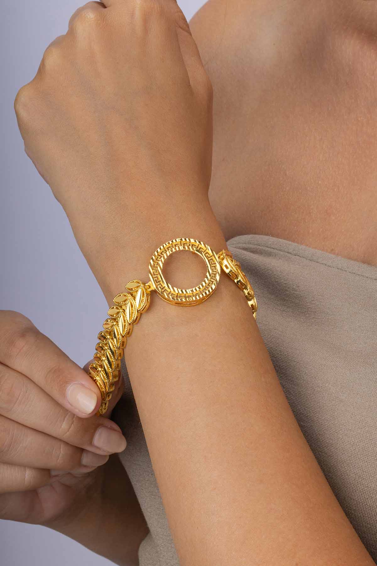 Gelince Haber Ver“Yarım altın koymak için özel olarak tasarlanan kelebek motifli altın kaplama çelik kadın bileklik, zarif ve geleneksel şıklığı bir araya getirir. Parlak yaprak ve kelebek desenleriyle süslenen bu bileklik, ortasında yarım altın takılabilen yuvarlak motif detayıyla düğün, nişan ve özel günlerde göz alıcı bir tamamlayıcı aksesuar olur. Paslanmaz çelik üzerine altın kaplama işçiliği sayesinde kararma yapmaz, uzun ömürlü kullanım sunar. Kelebek motifli modern tasarımıyla hem günlük kullanımda hem de davetlerde stilinize altın ışıltısı katan bu bileklik, sevdiklerinize hediye edebileceğiniz şık ve anlamlı bir seçenektir. Yarım altın bileklik modelleri arasında zarafetiyle öne çıkan bu tasarım, geleneksel takıları modern çizgilerle seven kadınlar için idealdir.”