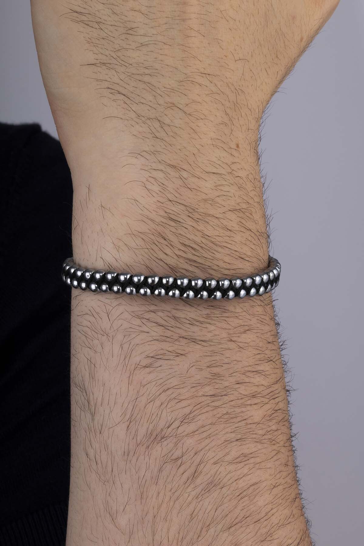 Çift Sıra Hematit Taşlı Doğal Taş Bileklik - 3