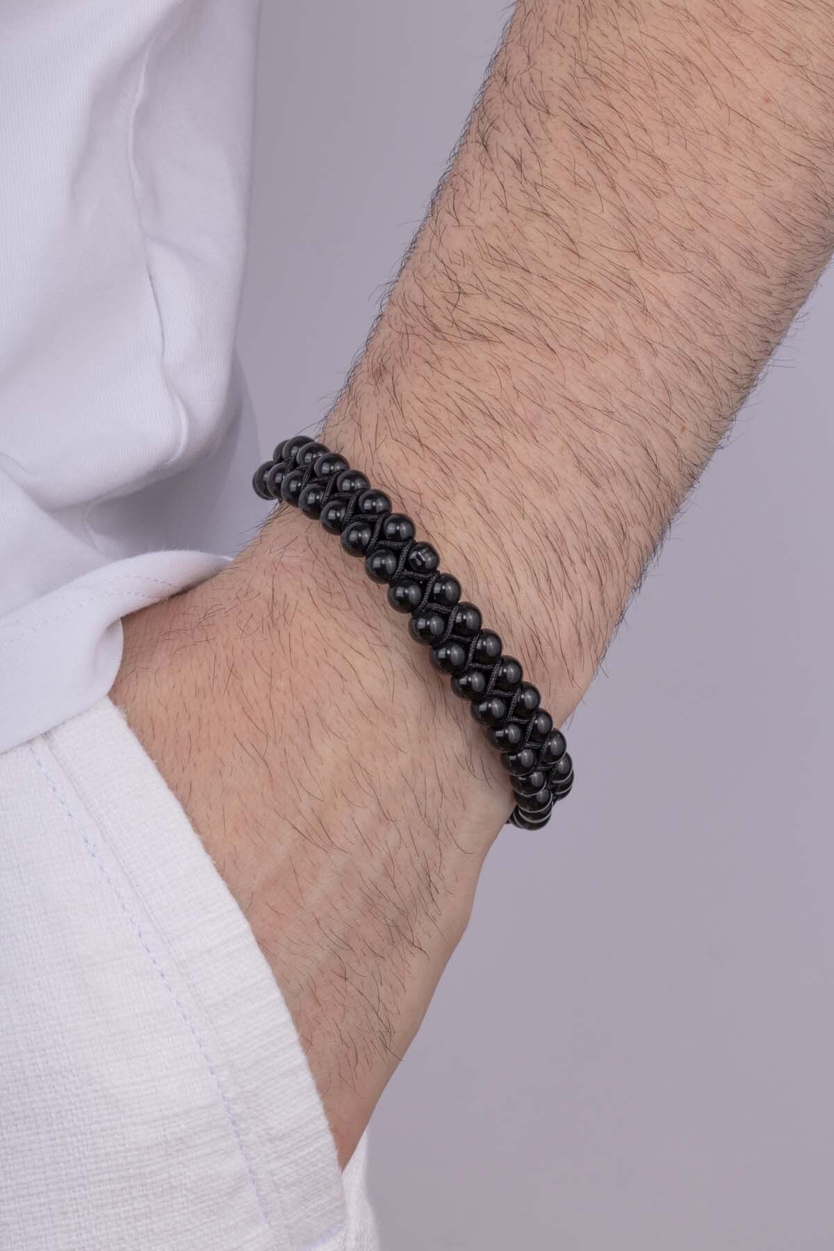 Çift Sıra Oniks Taşlı Makrome Doğal Taş Erkek Bileklik - 1