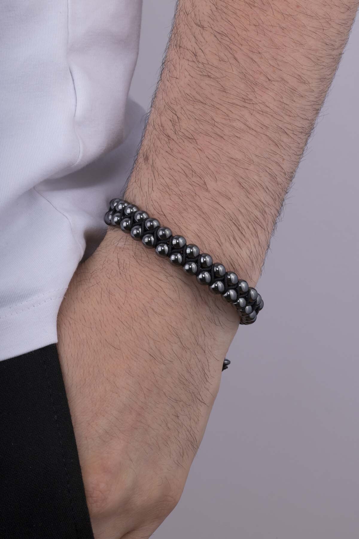 Çift Sıra Yuvarlak Kesim Hematit Taşlı Doğal Taş Bileklik - 3