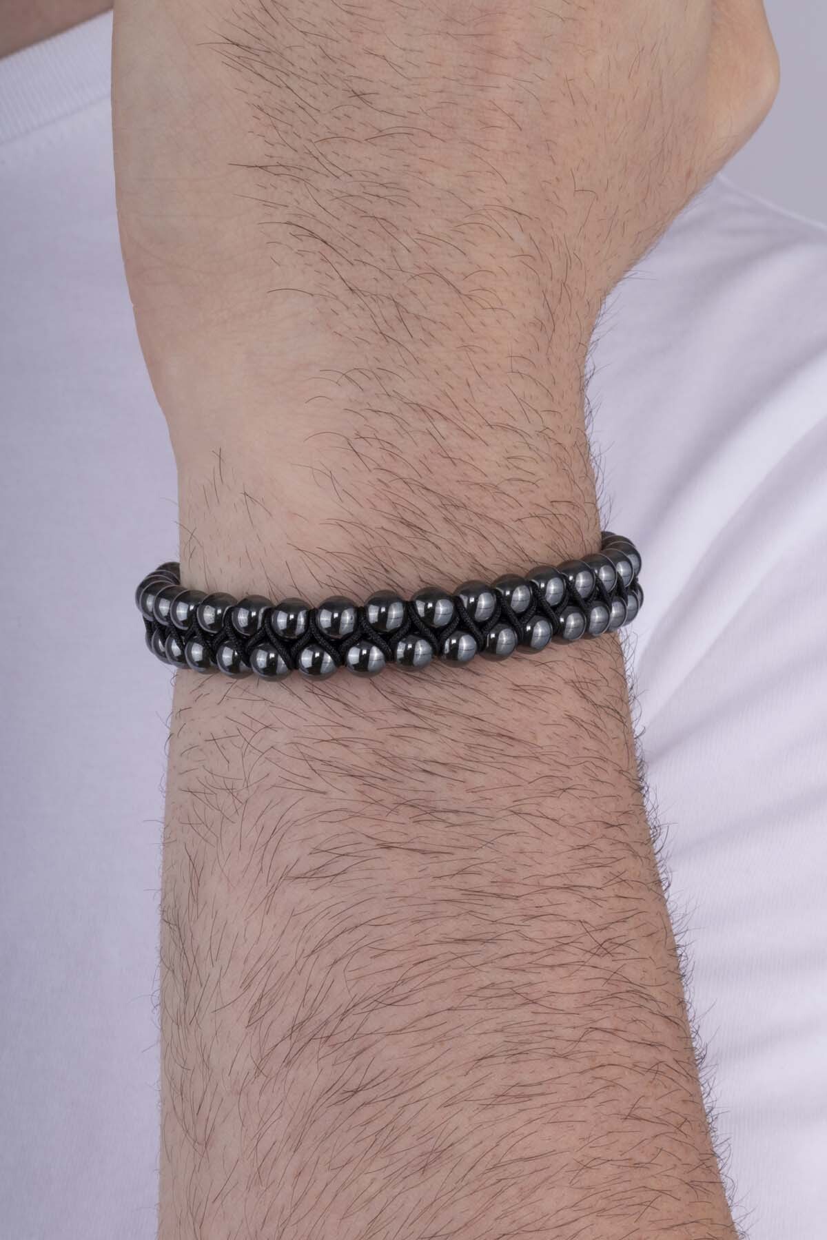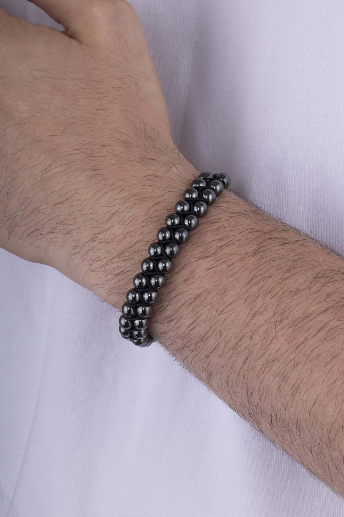 Çift Sıra Yuvarlak Kesim Hematit Taşlı Doğal Taş Bileklik - 2