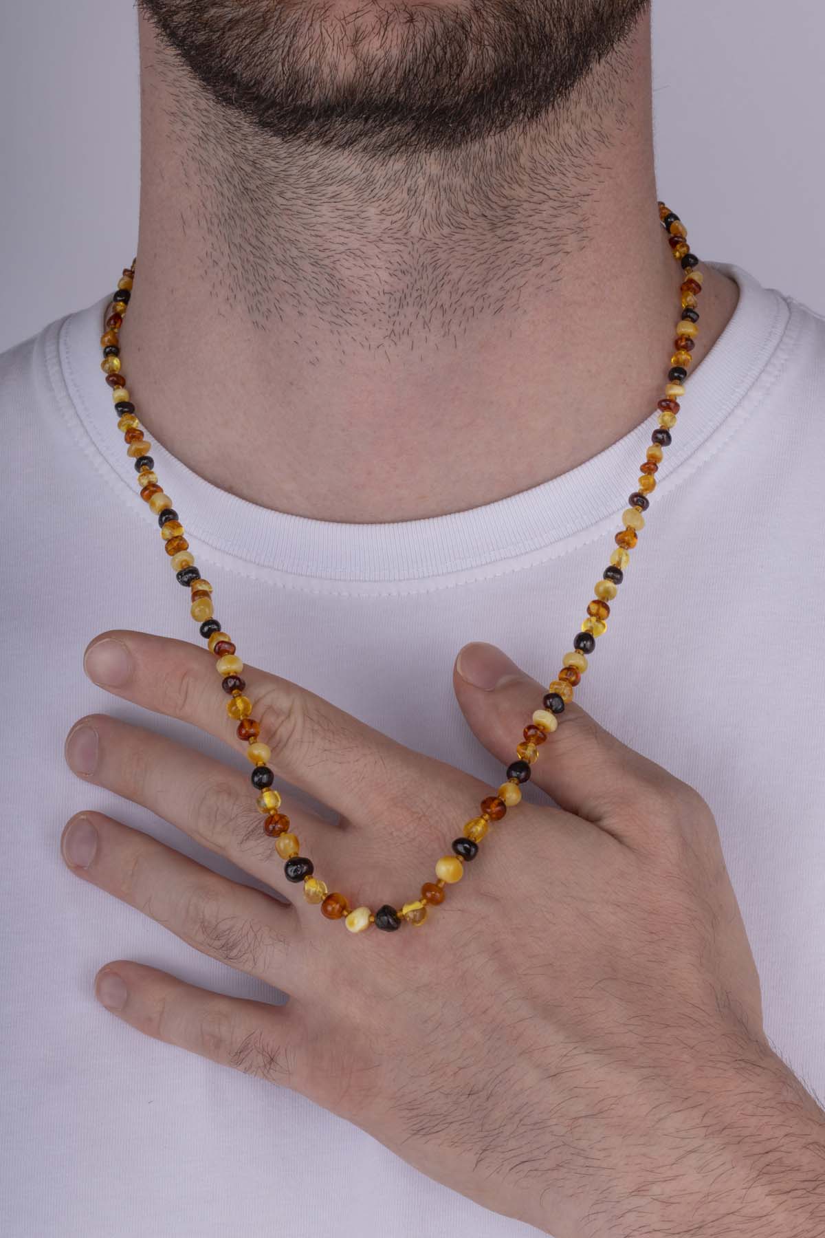 Desenli Kesim Orjinal Kehribar Kolye - 1