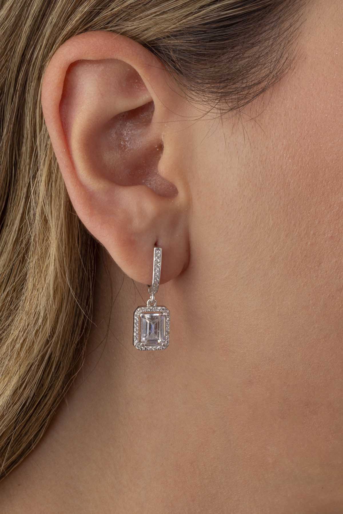 Dikdörtgen Taşlı Baget Taşlı Gümüş Küpe - 1