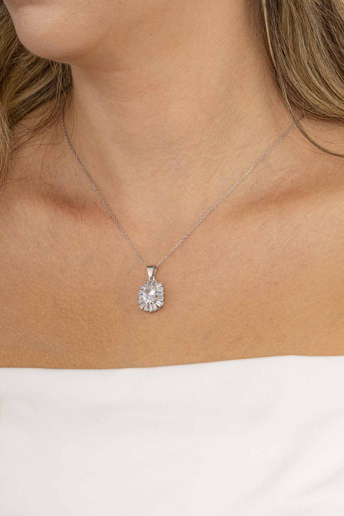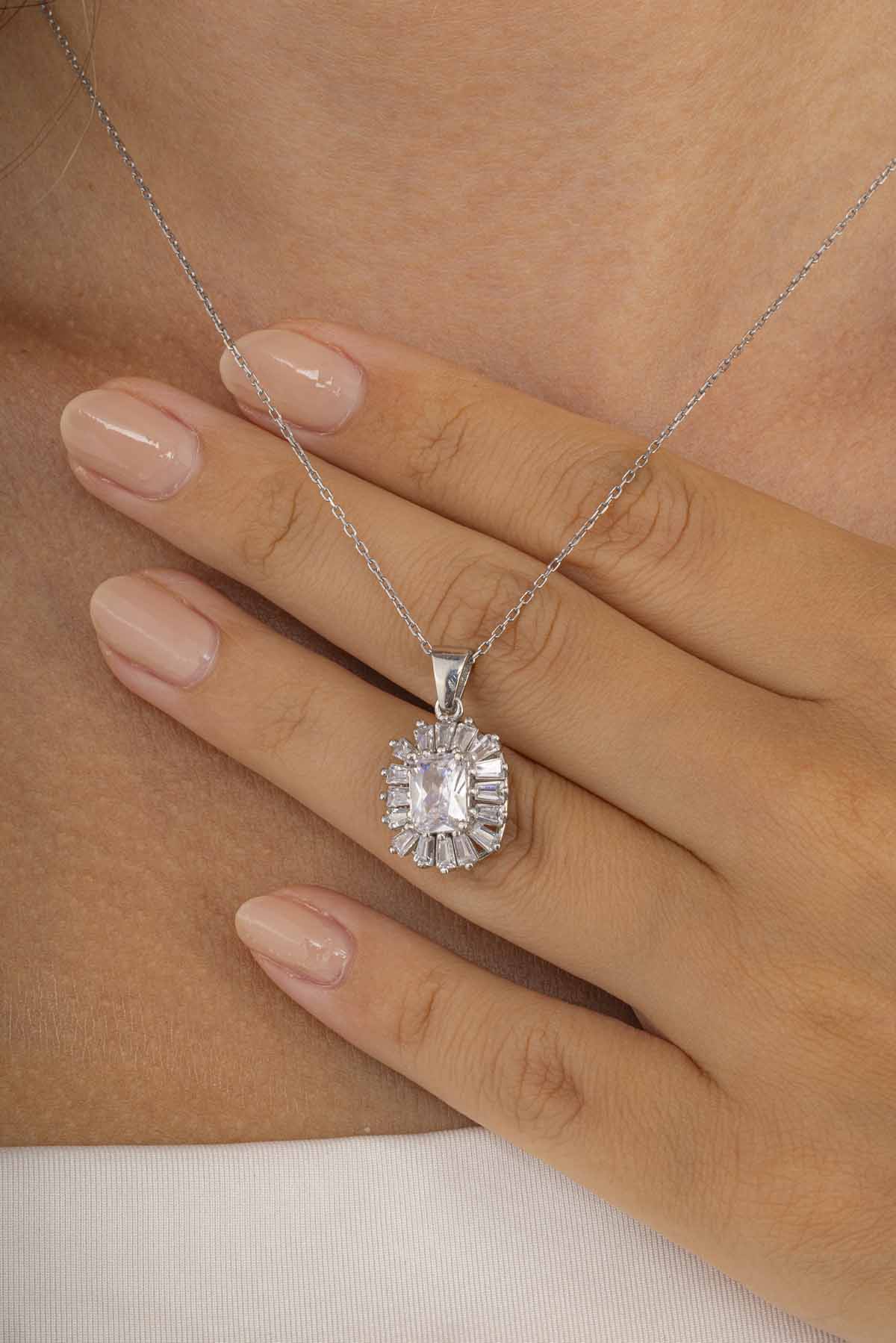 Göz alıcı elmas montürlerle tasarlanmış bu kolye, özel günlerinizde sizi ön plana çıkarır. Etkileyici parlaklığı ile unutulmaz anlar yaratın.