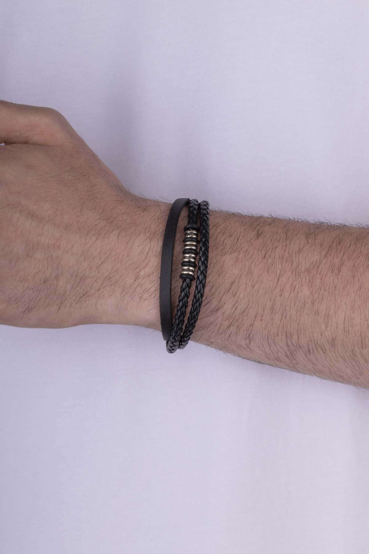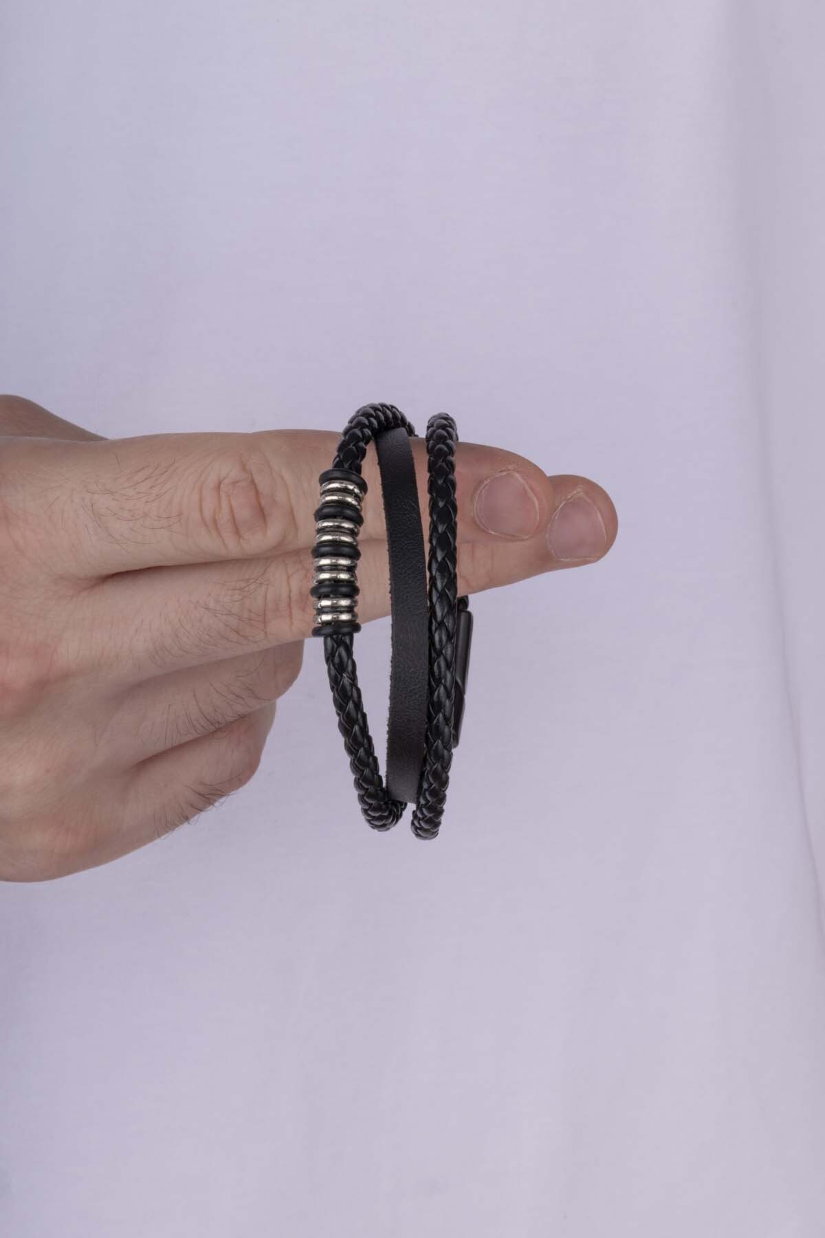Figürlü Örgü Model Üç Sıra Erkek Deri Bileklik - 3