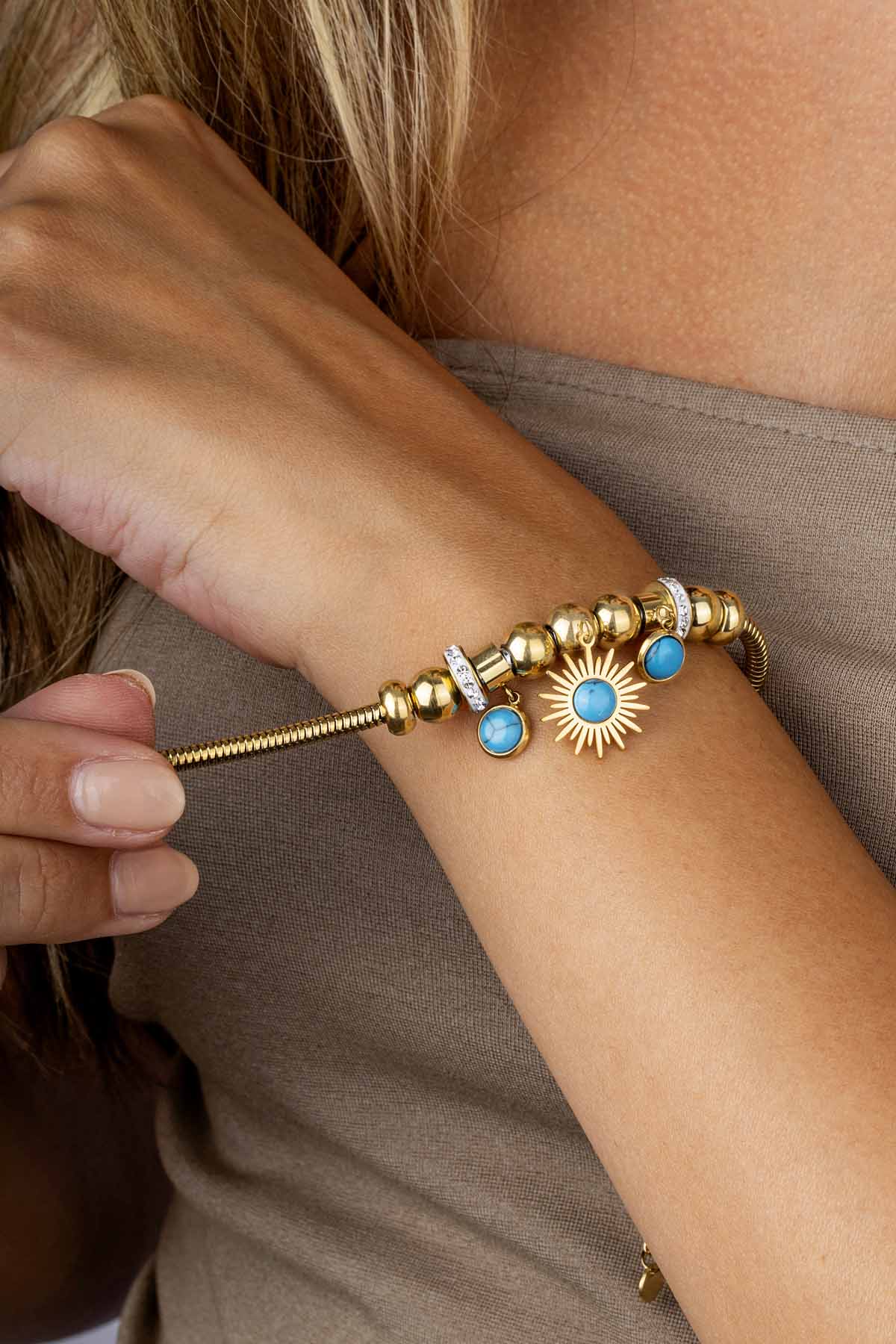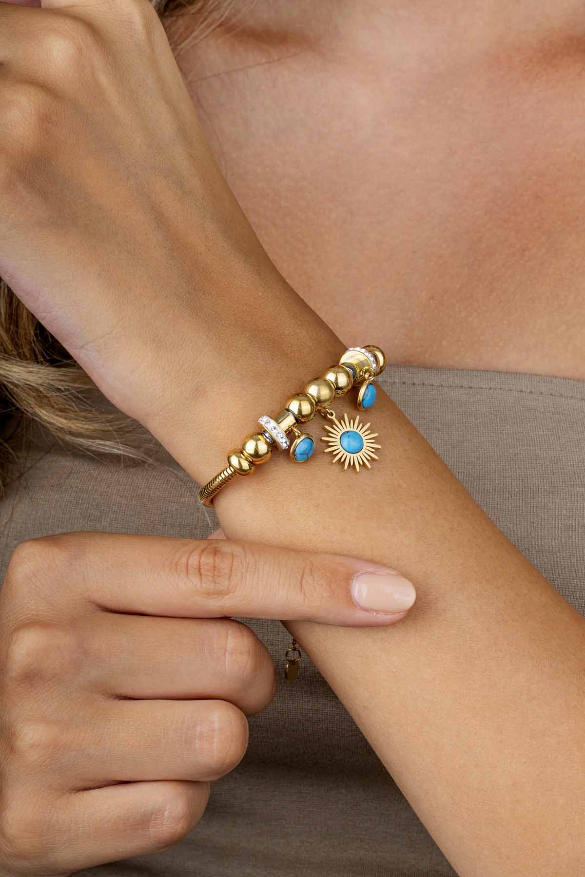 Firuze Taşlı Altın Kaplama Güneş Figürlü Kadın Charm Bileklik - 1
