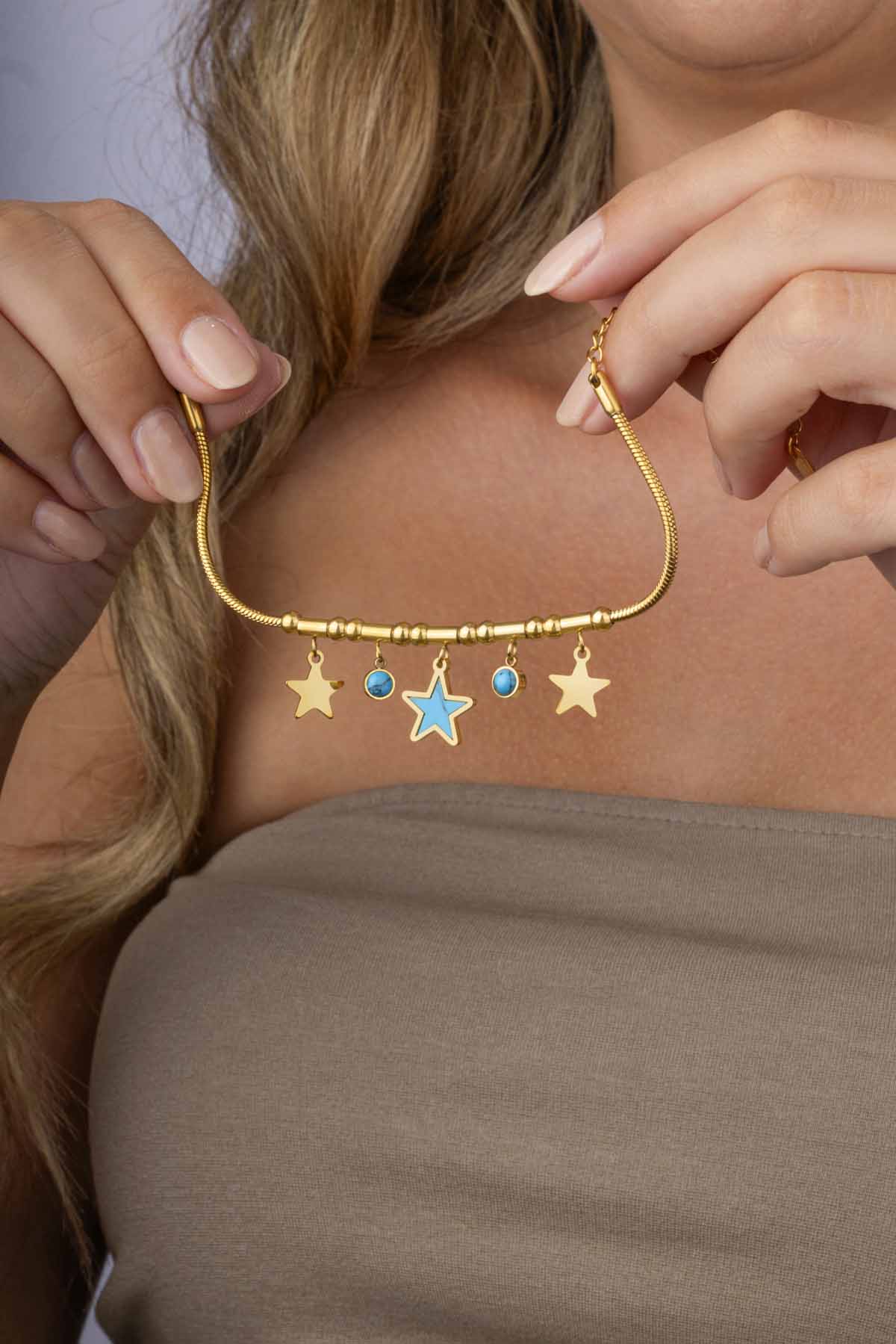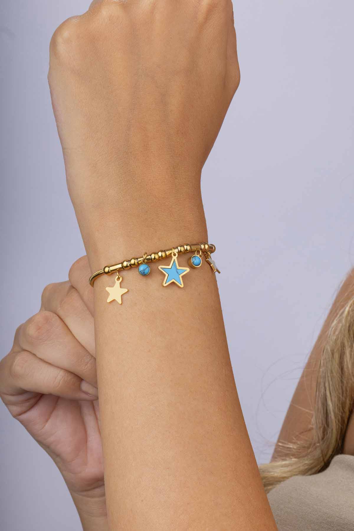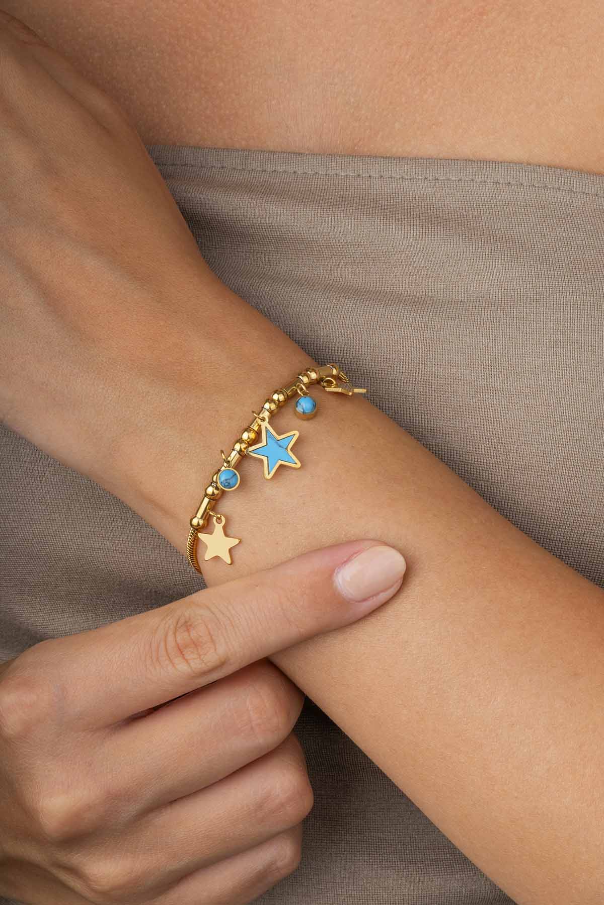 Firuze Taşlı Yıldız Figürlü Altın Kaplama Çelik Kadın Charm Bileklik - 1