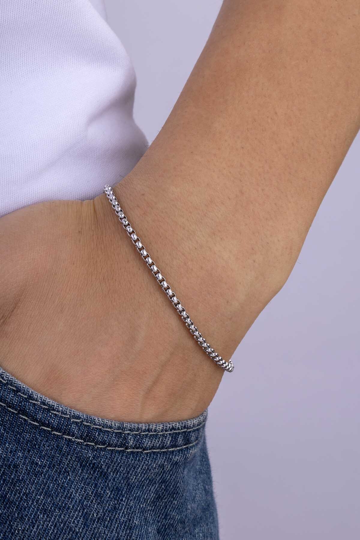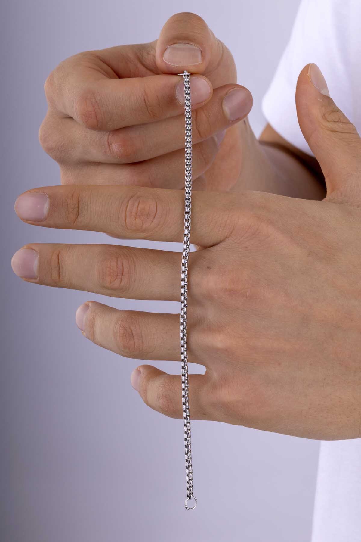 Paslanmaz çelikten üretilen bileklik, uzun ömürlü kullanım vadeder. Kararma yapmayan, solmaya karşı direnç gösteren ve günlük temasa uygun dayanıklı yapısı sayesinde her ortamda rahatlıkla kullanılabilir. İşçilik detayları milimetrik hassasiyetle işlenmiş olup zincir halkaları sıkı, düzenli ve premium bir görünüm sunar. Bilekte hafif ama kaliteli bir his bırakan bu model, özellikle modern ve sade takı tercih eden erkekler için güçlü bir alternatif oluşturur.