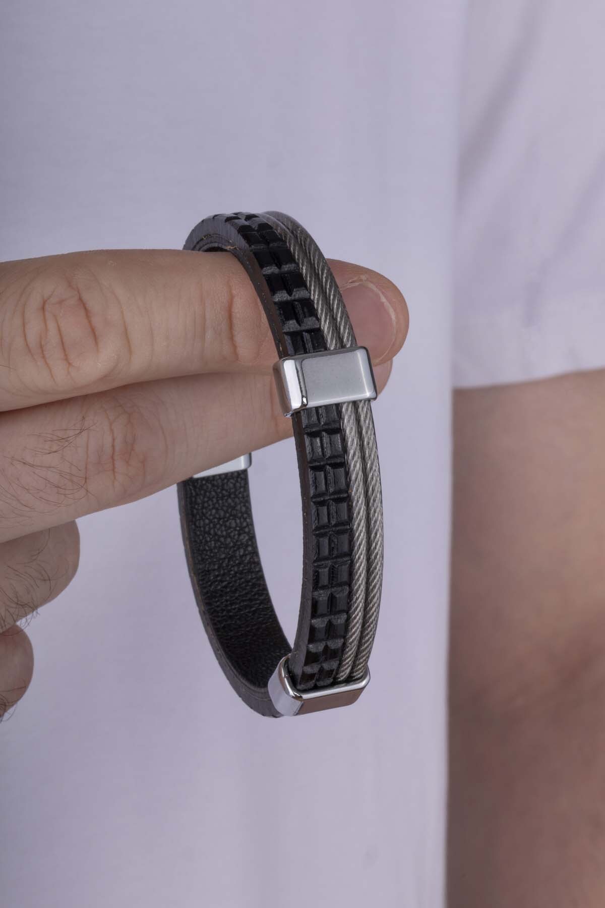 Örgü Model Çift Geçişli Çelik Aparatlı Erkek Deri Bileklik - Gümüş Pazarım Örgü Model Çift Geçişli Çelik Aparatlı Erkek Deri Bileklik - Gümüş Pazarım (1)