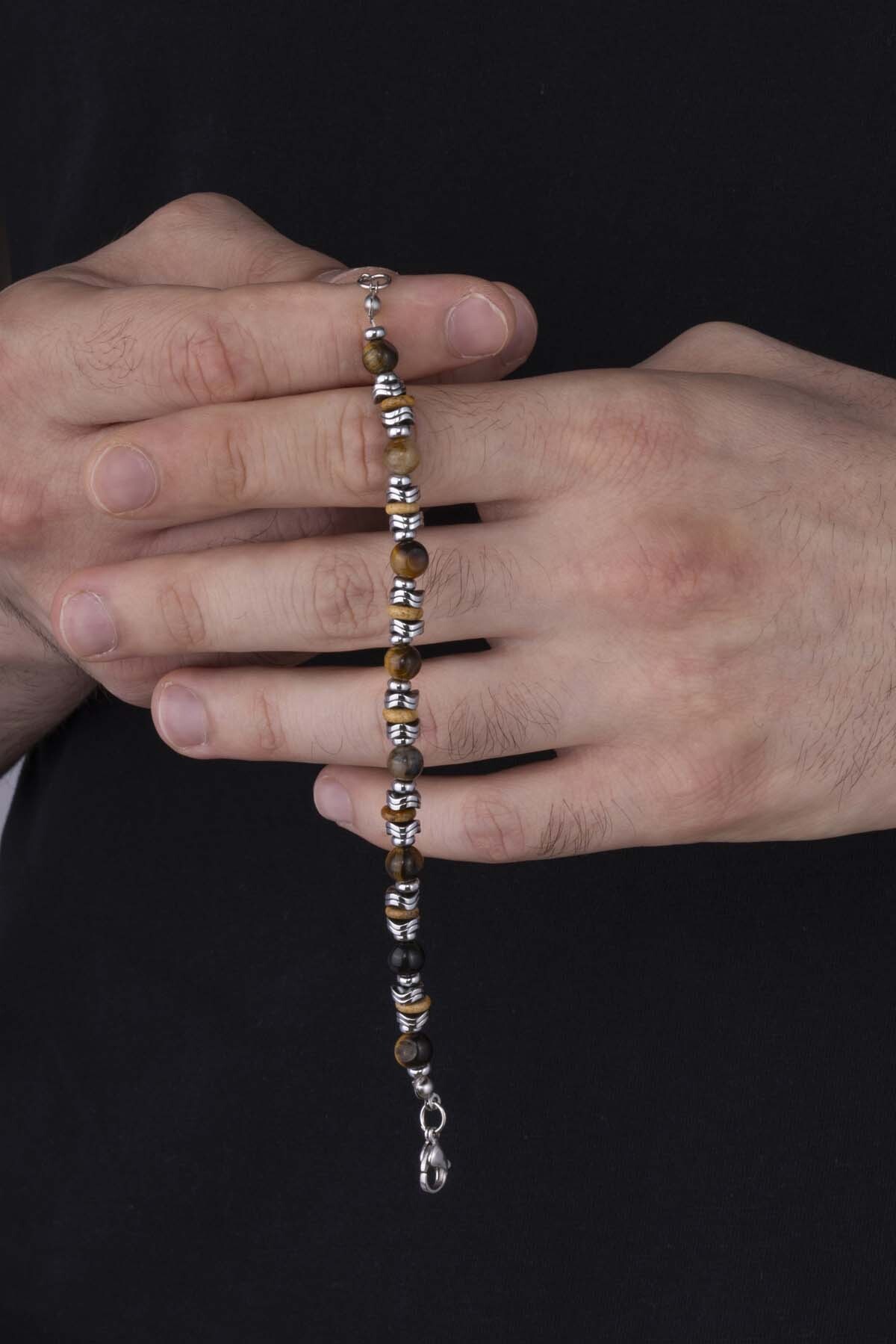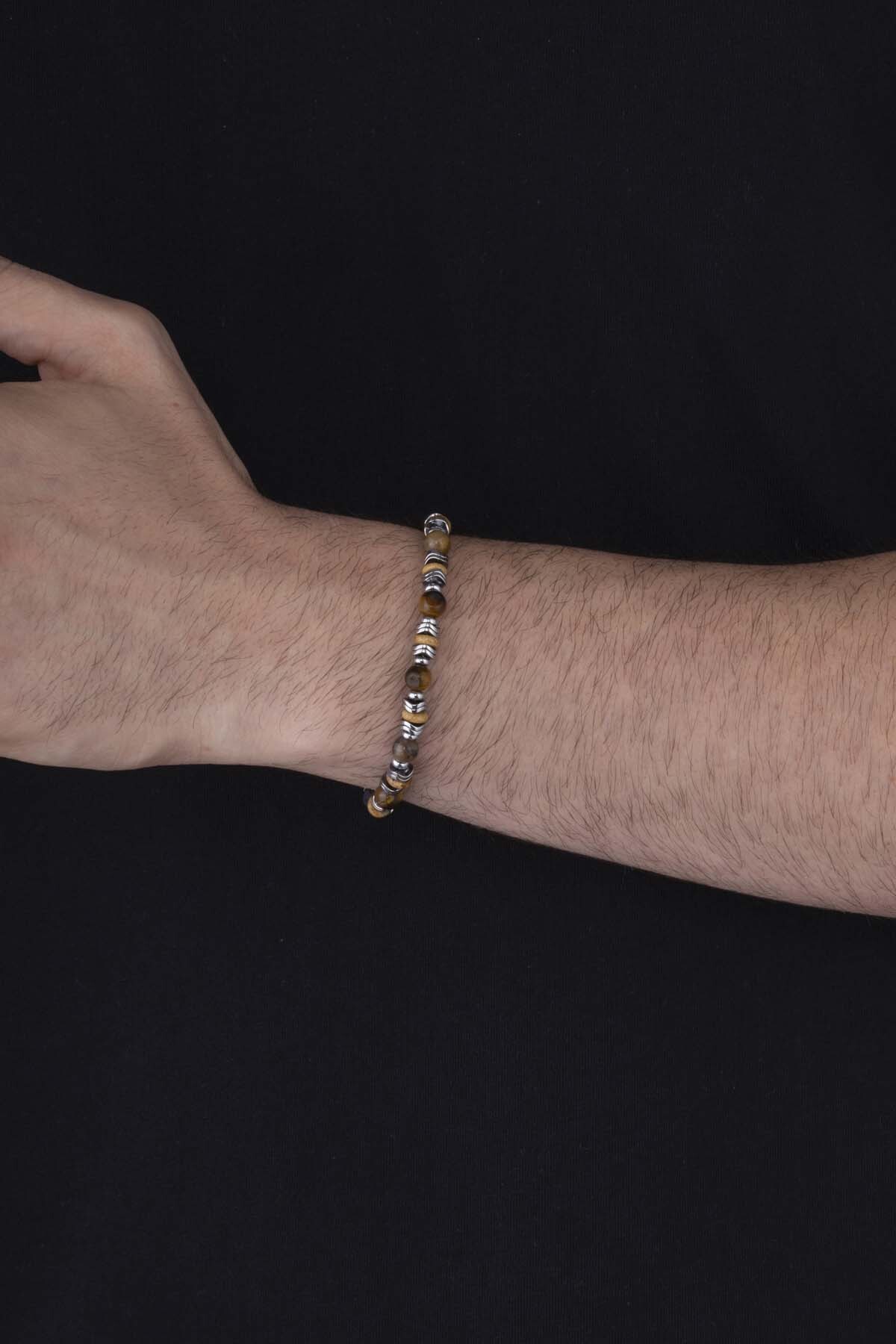 Bu bileklikte kaplan gözünün enerjik görünümü ile hematitin dengeleyici yapısı bir araya getirilmiştir. Sarı-kahverengi tonların enerjik ve göz alıcı etkisi, gri-siyah hematit taşlarıyla modern bir uyum içinde sunulmaktadır. Hem stilini güçlendirmek hem de doğal taşların enerjisel faydalarından yararlanmak isteyen erkekler için güçlü bir tasarım ortaya çıkmıştır.