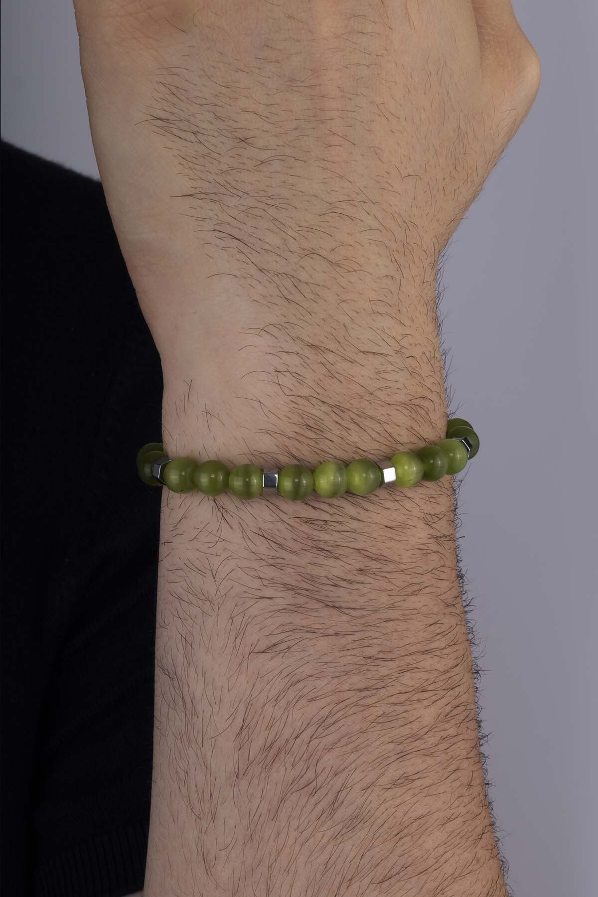 Esnek yapısı sayesinde bileğinize rahatça oturan bu bileklik, hem günlük kombinlerinize hem de özel anlarınıza uyum sağlar. Yeşilin doğallığı ile hematitin modern dokusu, her stile kolayca entegre edilebilecek zamansız bir aksesuar yaratır.