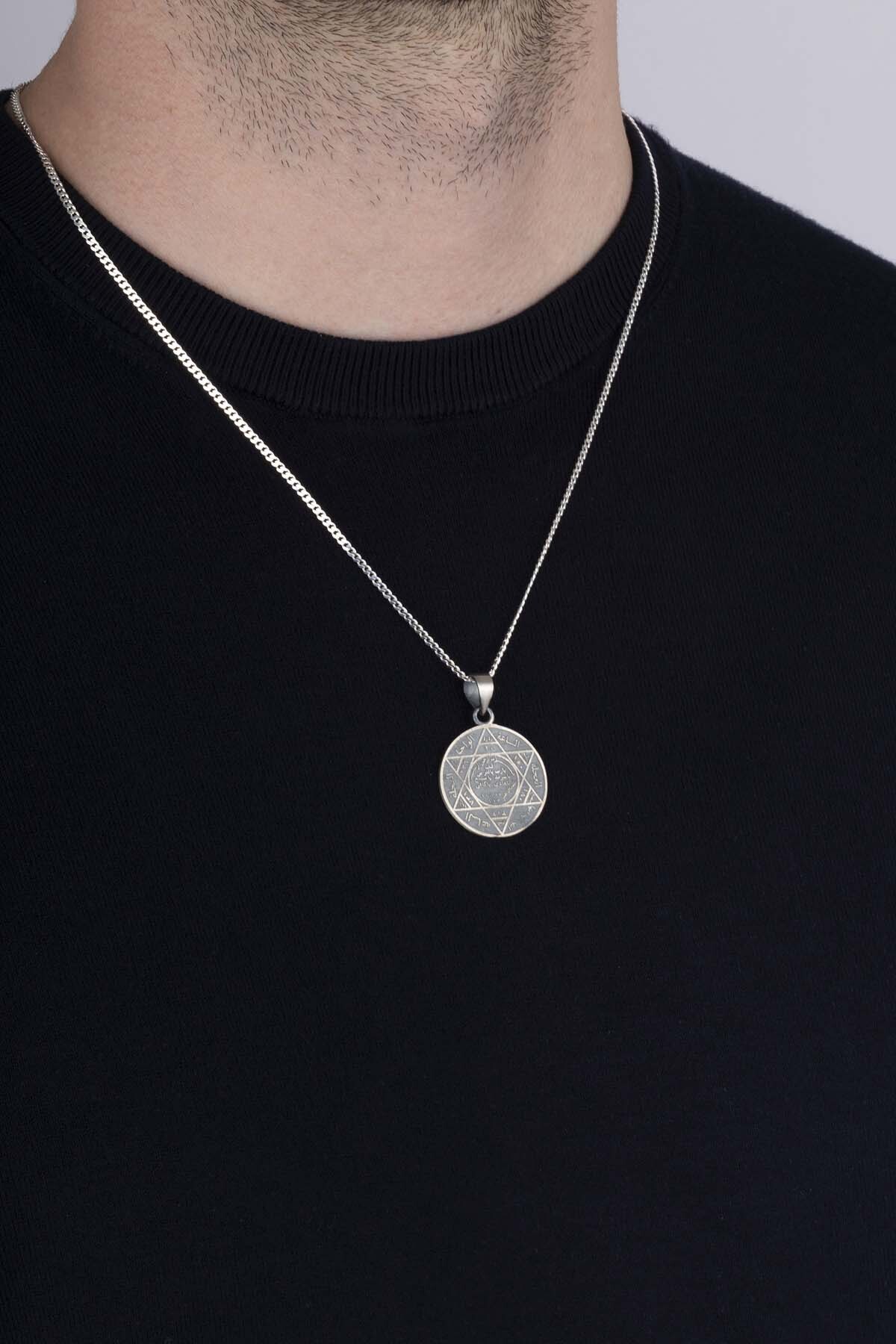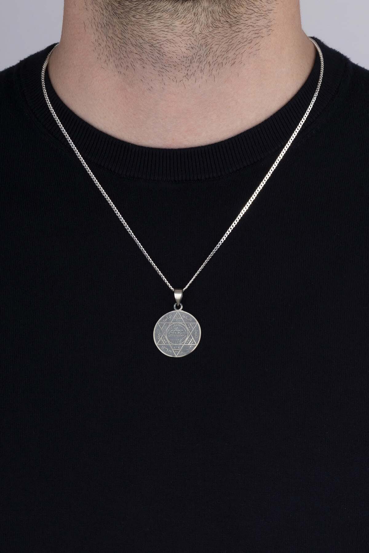 Hz. Süleyman’ın mührü, bilgelik, kudret ve koruyucu anlamıyla tarih boyunca önemli bir sembol olmuştur. Bu kolye, güçlü simgesel değerleriyle farklılık arayan erkeklerin stiline anlam katar. Minimalist zincir detayı ve dikkat çekici tasarımı sayesinde hem klasik hem de modern kombinlerle uyum sağlar.
