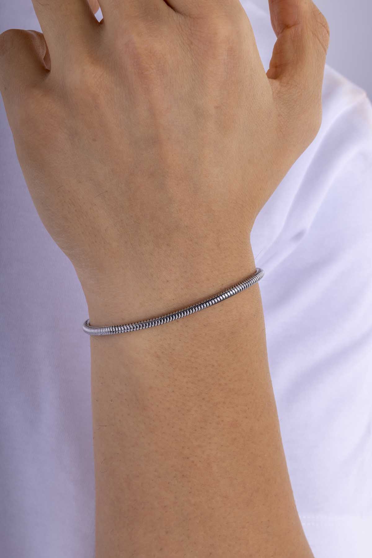 Rodyum Kaplama İtalyan Charm Çelik Bileklik