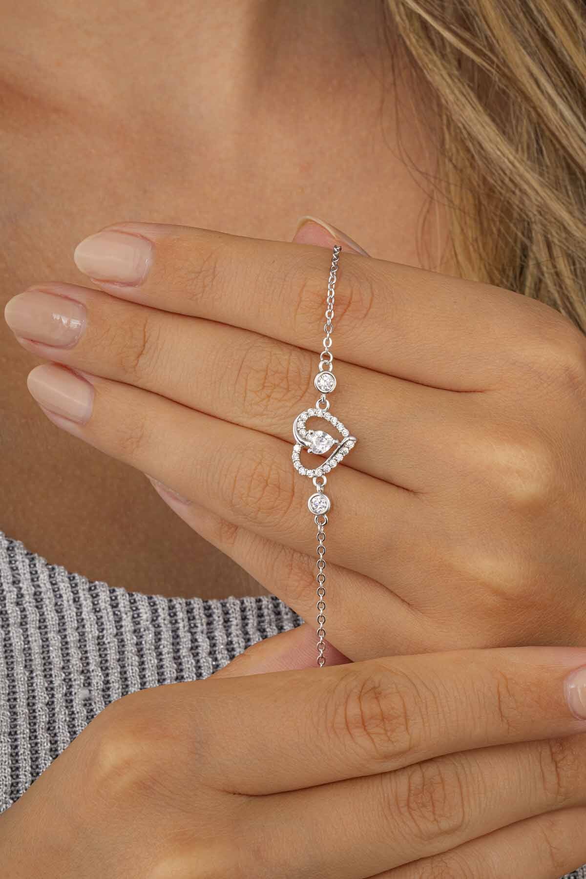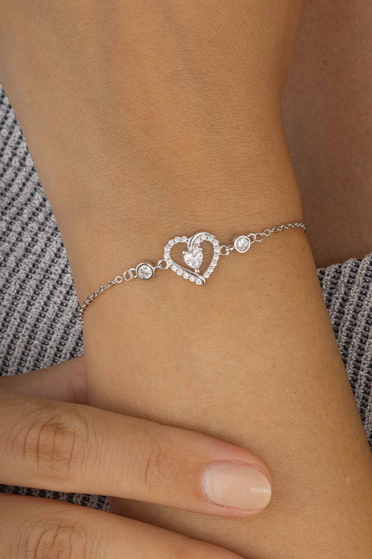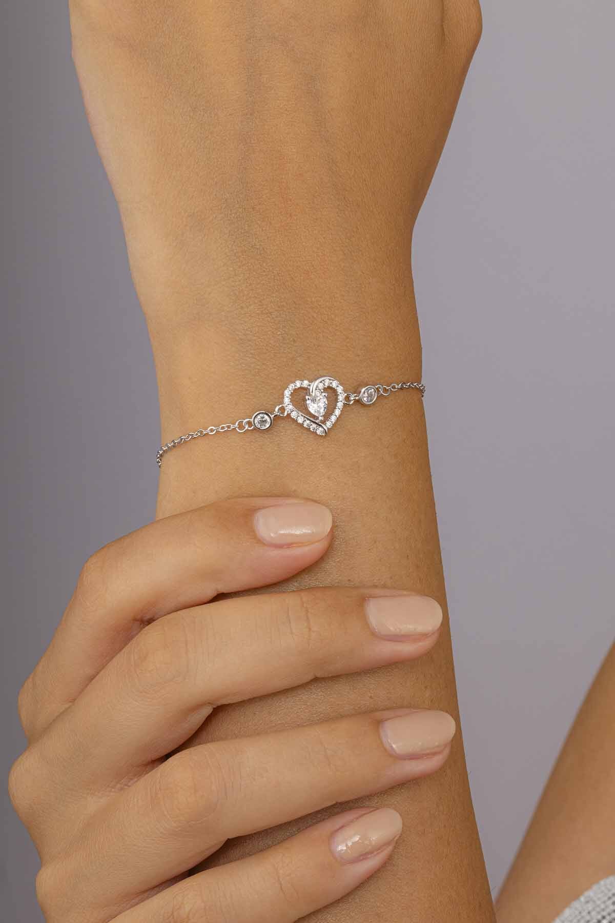 Kalp Figürlü Taşlı Gümüş Kadın Bileklik - 1