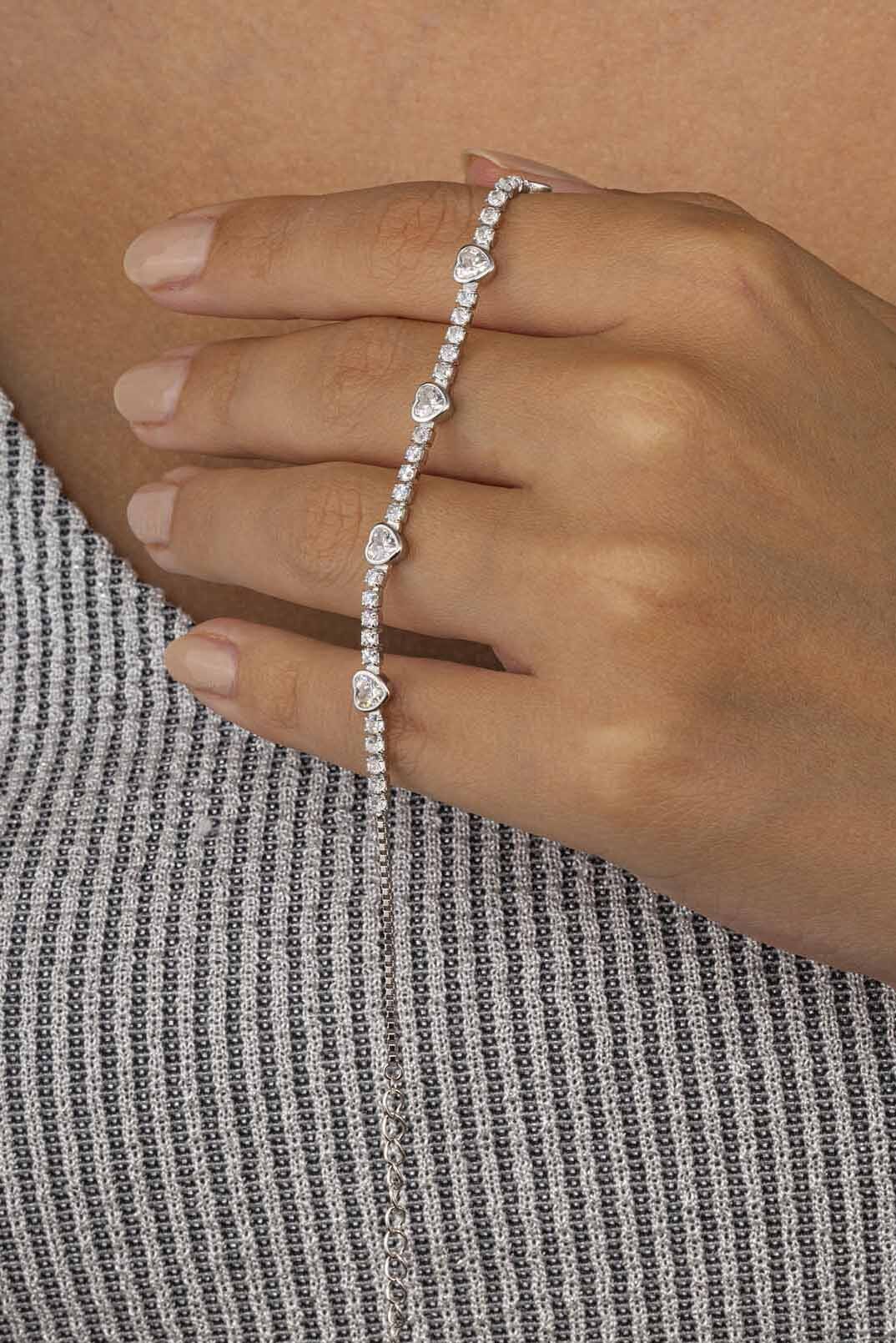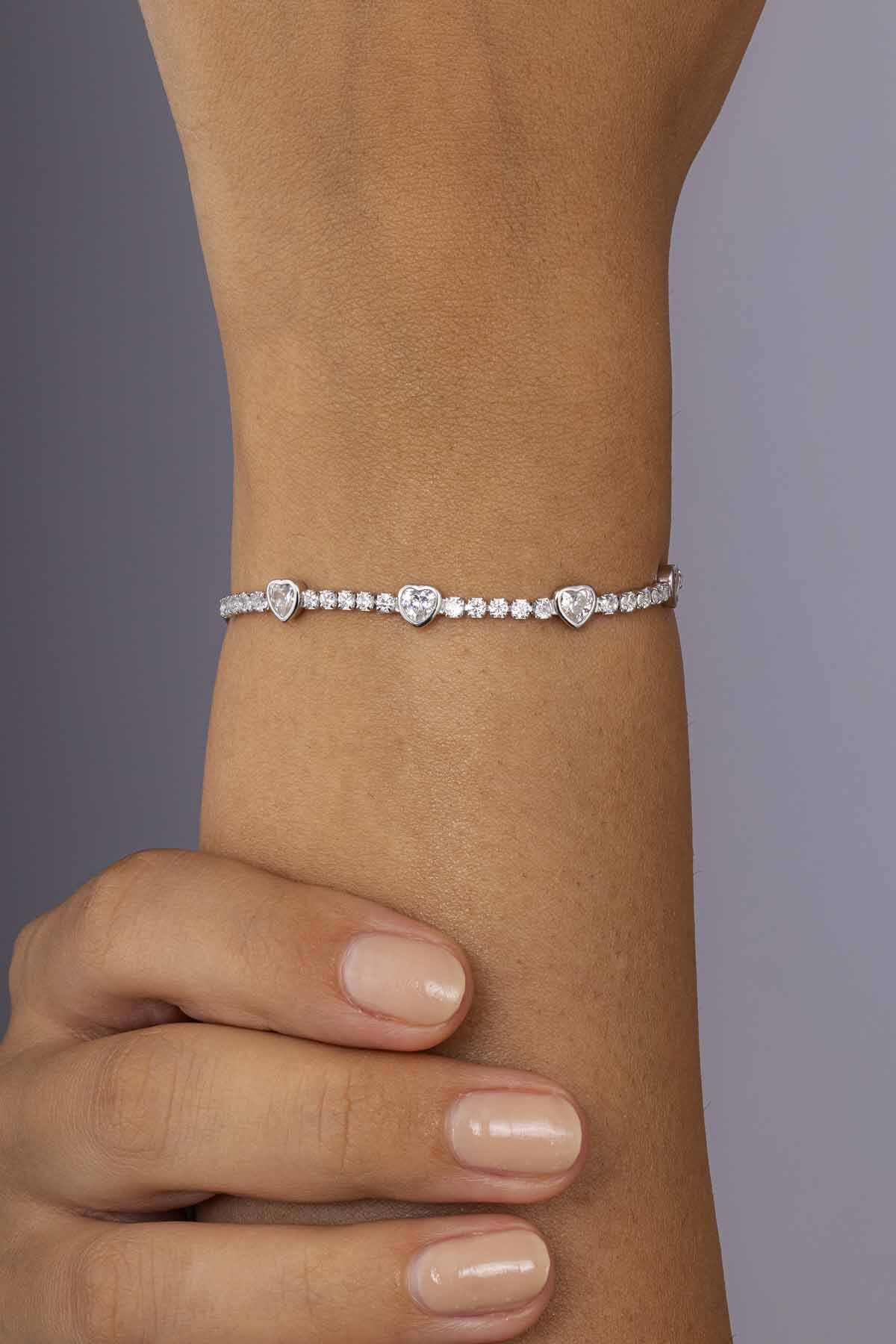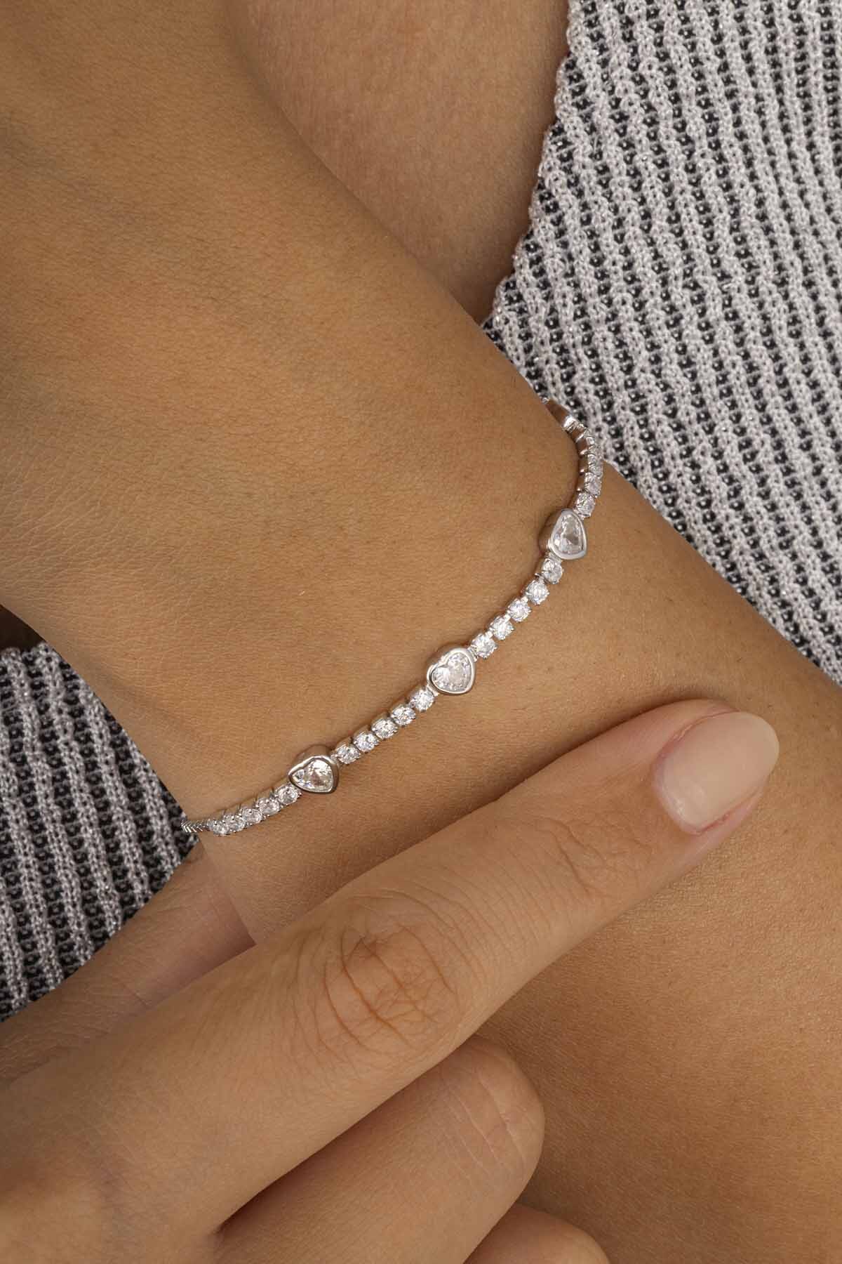 925 ayar gümüşten üretilen bu bileklik, dayanıklılığı ve uzun ömürlü yapısıyla öne çıkar. Alerji dostu gümüş yapısı sayesinde hassas ciltlerde güvenle kullanılabilir. Tektaş modelinde kullanılan parlak taşlar, ışığı etkileyici şekilde yansıtarak her kombine sofistike bir dokunuş ekler. Modern ve klasik çizgilerin buluştuğu bu tasarım, kadın takı koleksiyonlarının öne çıkan parçalarındandır.