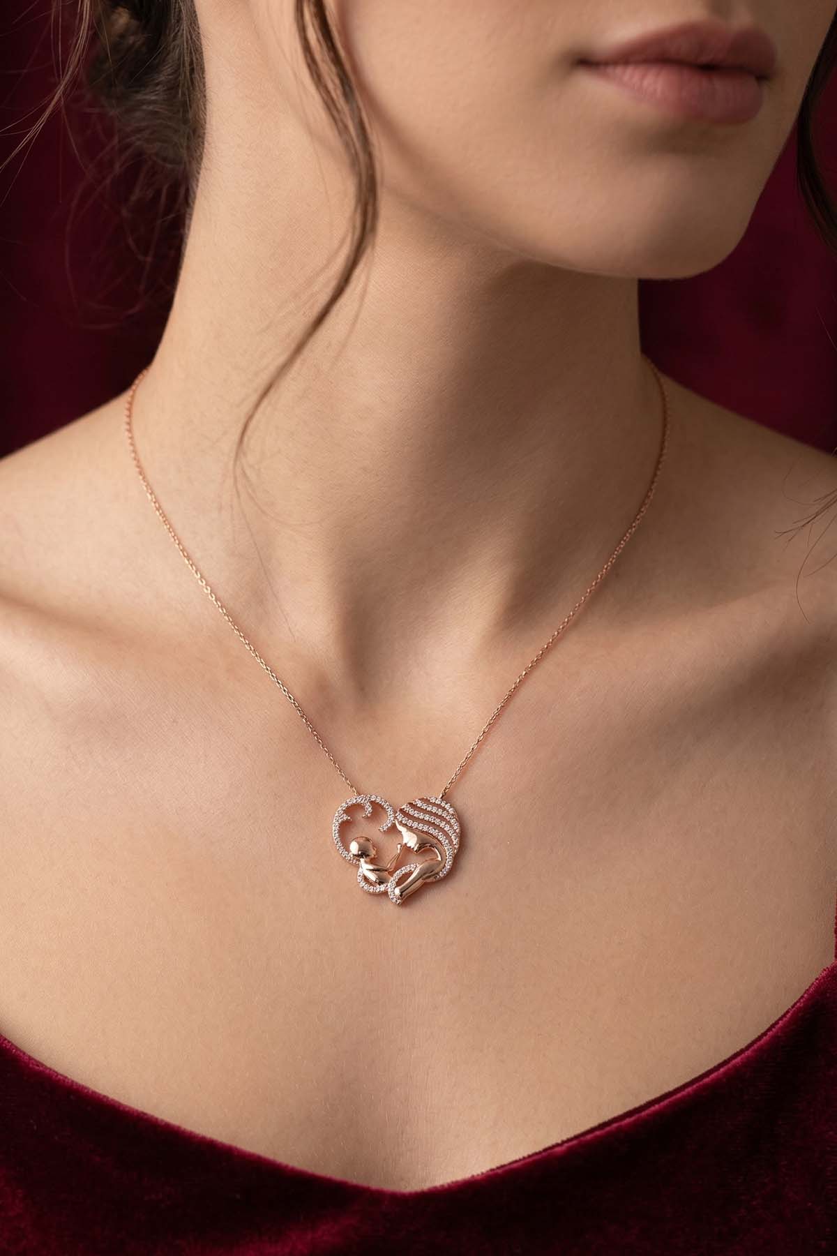 Gelince Haber VerBir annenin evladına olan karşılıksız sevgisini, kalbin en derininde taşıyan bu özel kolye ile taçlandırın. Rose goldun sıcak tonu ve zirkon taşların ışıltısıyla birleşen bu tasarım, hem estetik hem de manevi bir şaheserdir.
