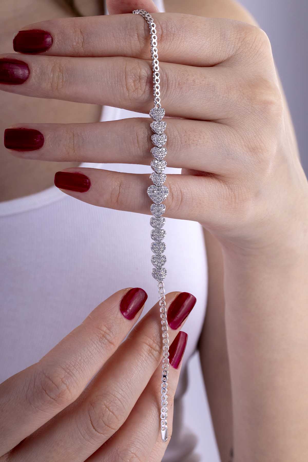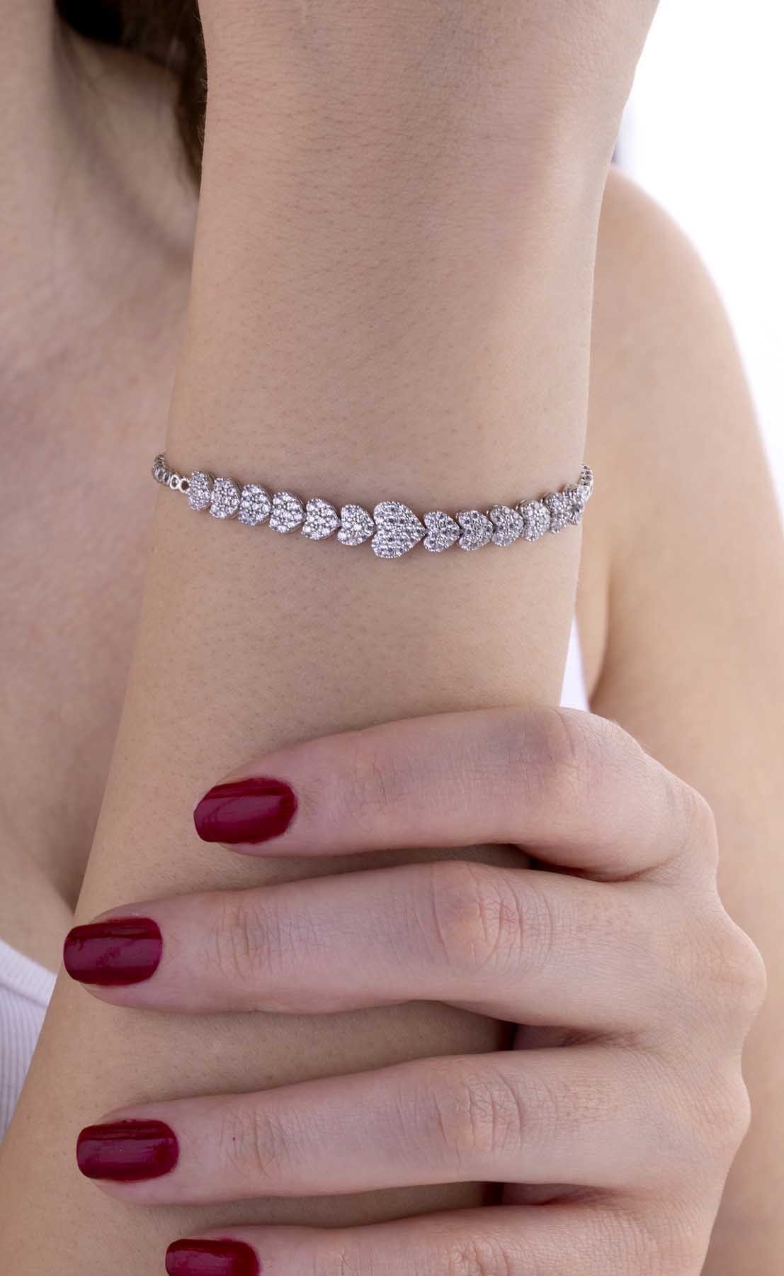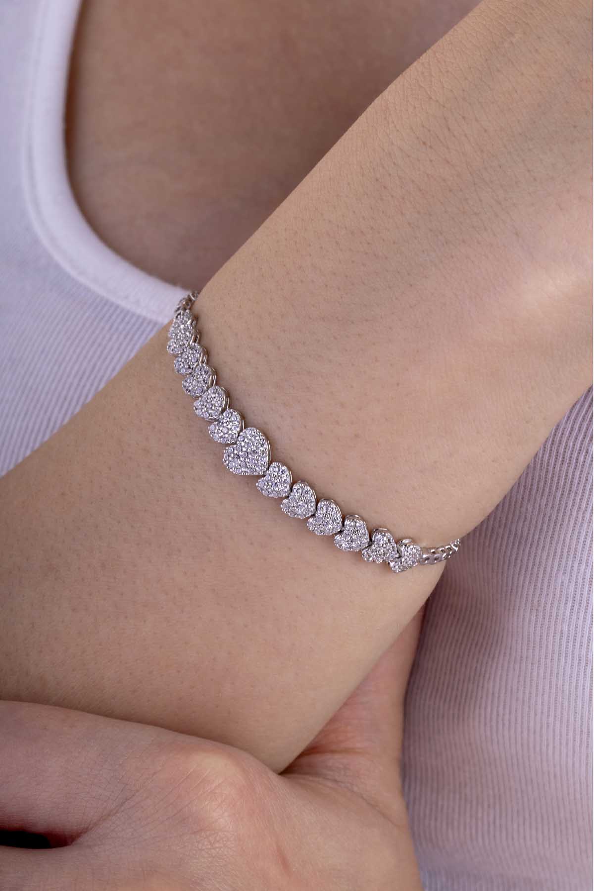 Rodyum Kaplama Kalp Gümüş Su Yolu Bileklik