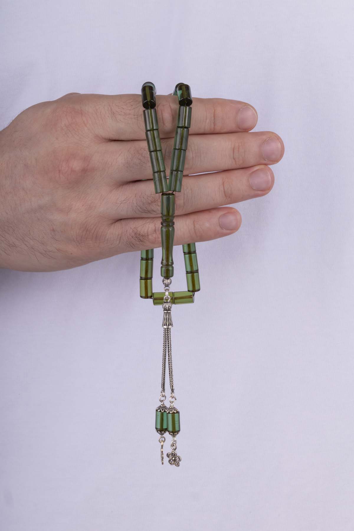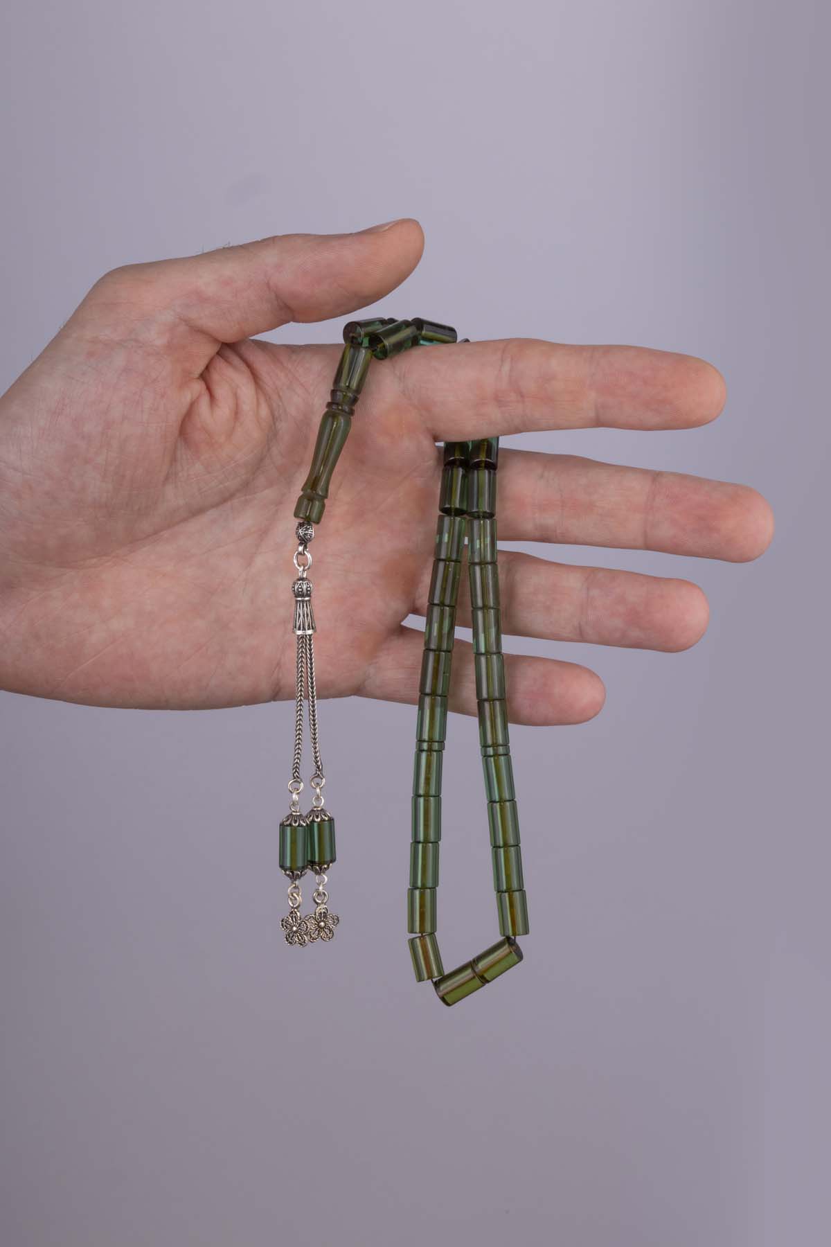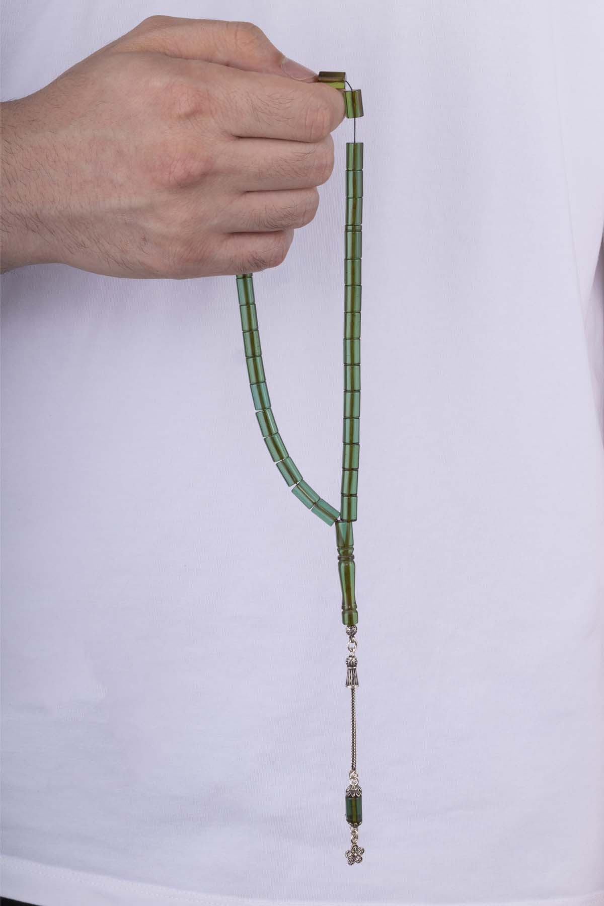 Kapsül Kesim Yeşil Gümüş İmameli Kehribar Tesbih