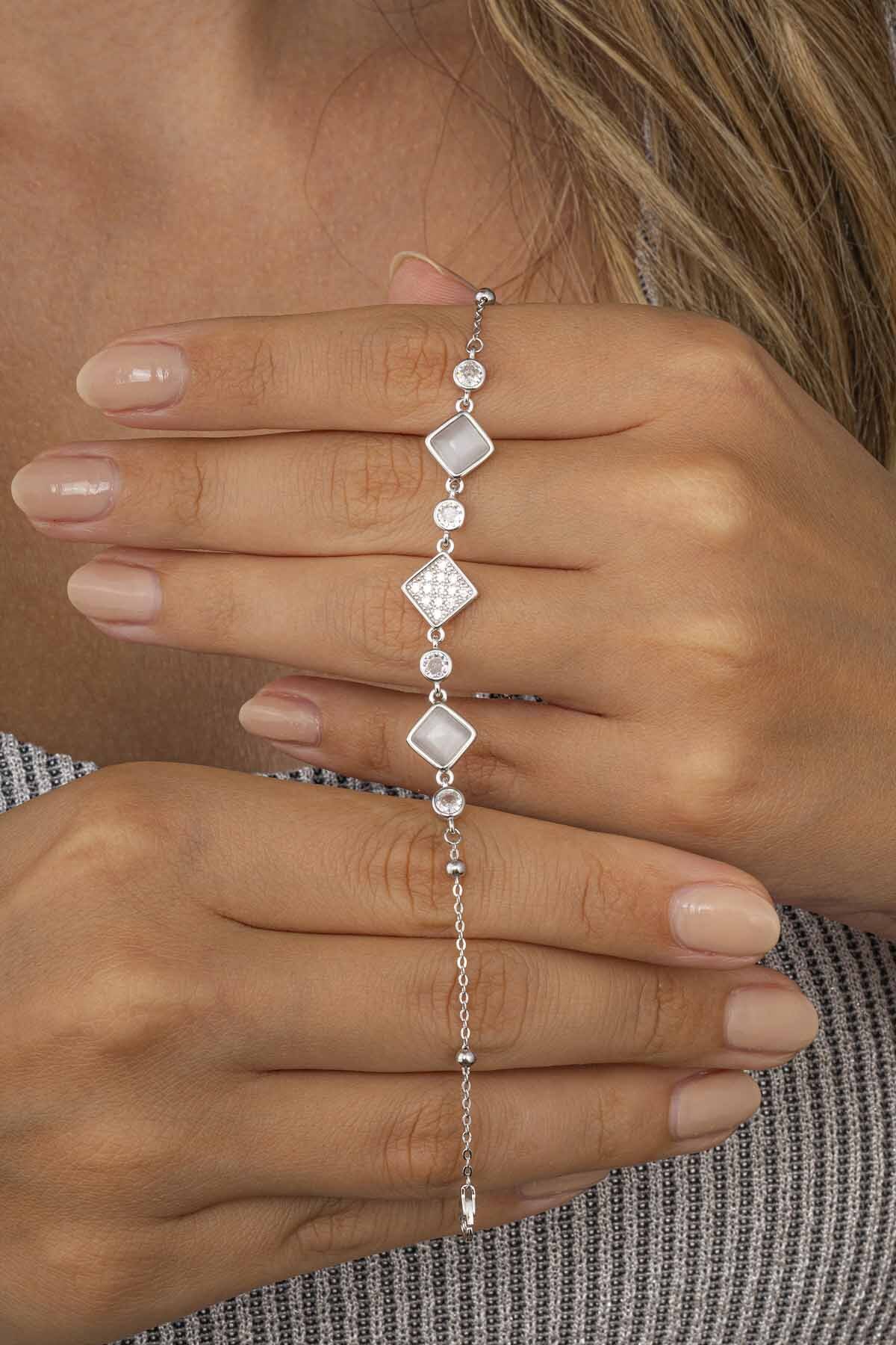 Minimalist ama dikkat çekici tarzıyla öne çıkan bu bileklik, farklı kombinlerle kolayca uyum sağlar. Günlük kullanımda sade bir şıklık sunarken, özel günlerde abiye ve zarif kıyafetlerle tamamlayıcı bir aksesuar olur. Kare figürlerin geometrik düzeni, bileklik tasarımına modern bir hava katarken, top zincir detayları da hareketli ve özgün bir stil sunar.
