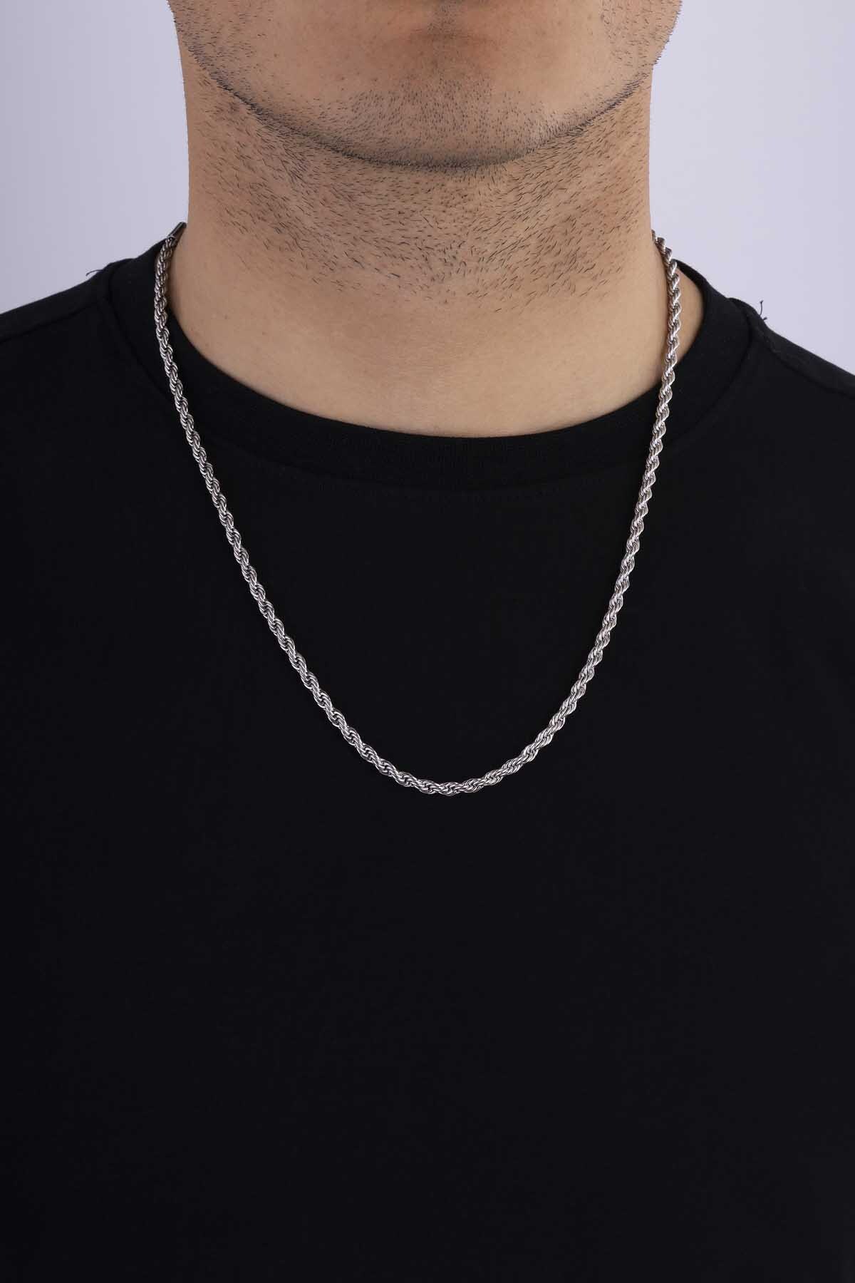 Klasik burgu model erkek çelik zincir, spiral burgu tasarımı ve parlak çelik yüzeyiyle modern, dayanıklı ve her stile uyum sağlayan şık bir aksesuardır.