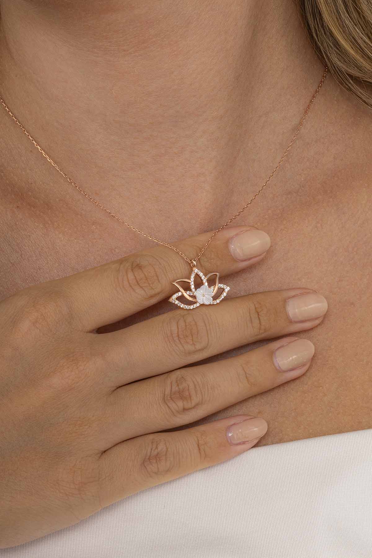Saflık, yeniden doğuş ve ruhsal dinginliği simgeleyen 925 ayar gümüş lotus kolye, zarif tasarımıyla hem şıklığınızı tamamlar hem de derin bir anlam taşır.