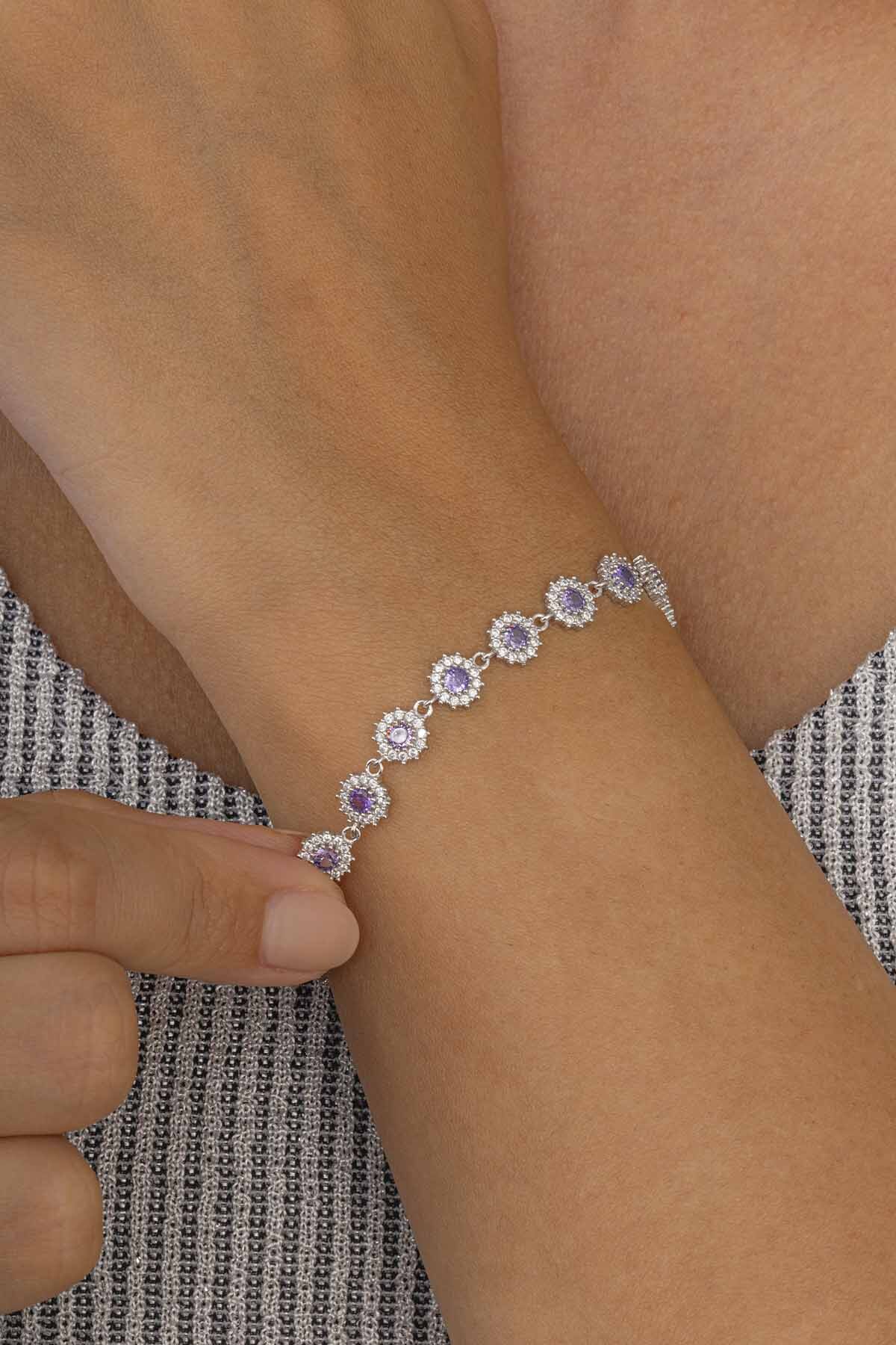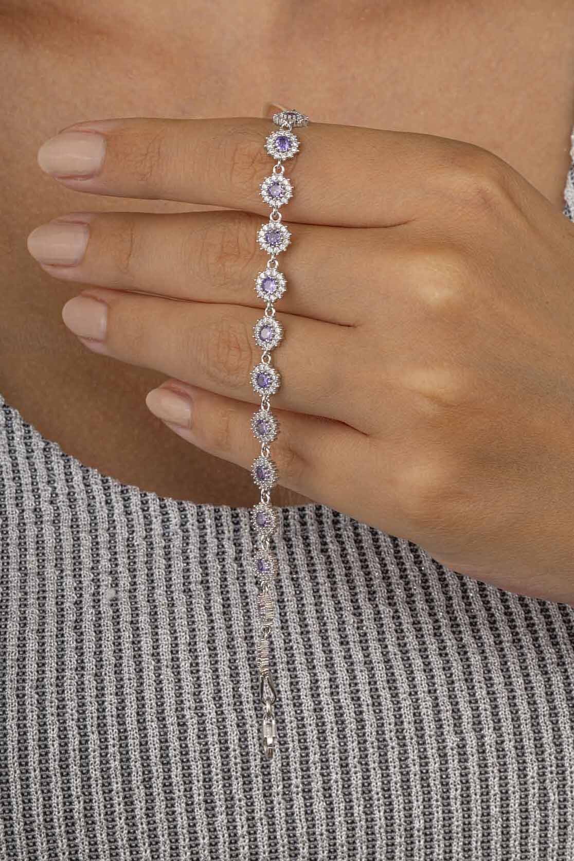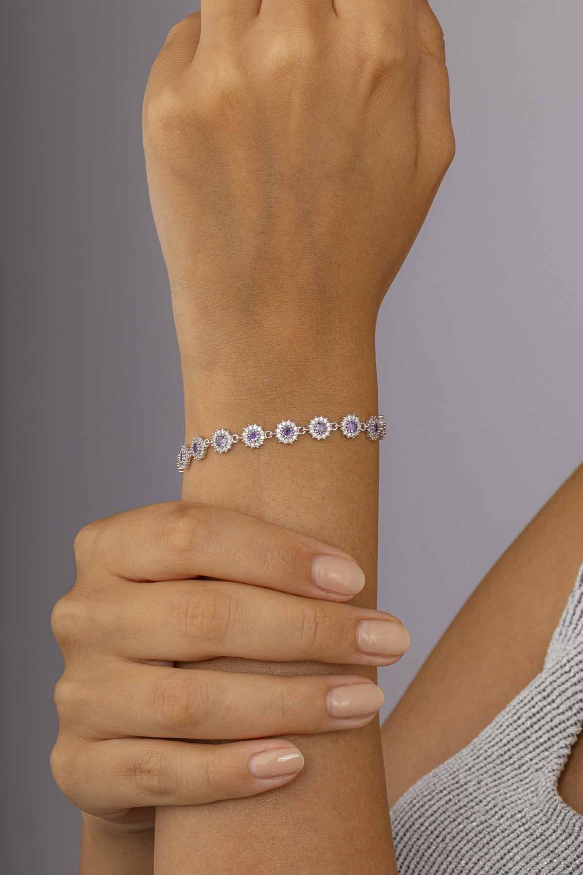 925 ayar gümüş kalitesiyle uzun süre parlaklığını koruyan bu bileklik, zarif mor detayları sayesinde anlamlı bir hediye seçeneği olarak da tercih edilebilir. Özel günlerde sevdiklerinize sunabileceğiniz bu değerli parça, estetik duruşuyla her yaştan kadının takı koleksiyonunda yer almayı hak ediyor.