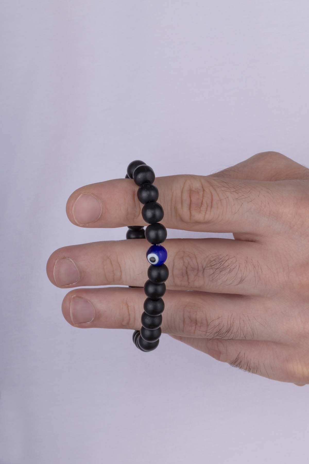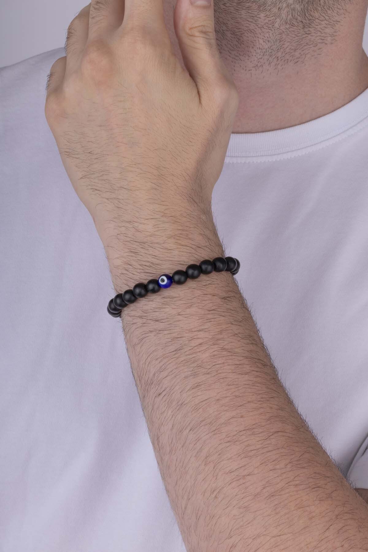 Nazar Boncuğu Detaylı Oniks Taşlı Doğal Taş Erkek Bileklik - 2