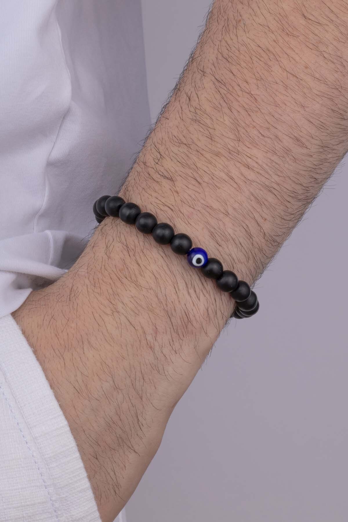 Nazar Boncuğu Detaylı Oniks Taşlı Doğal Taş Erkek Bileklik - 1