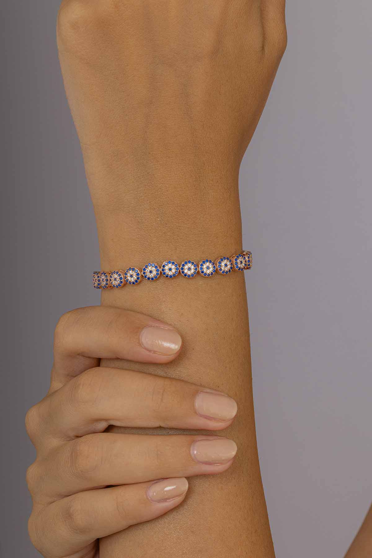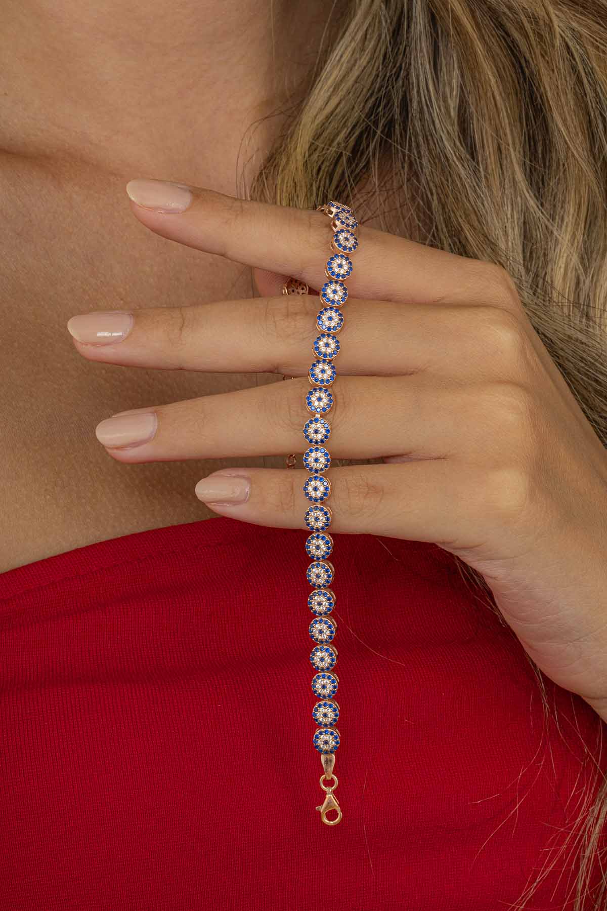 Bu nazar boncuklu bileklik, geleneksel inanışları modern bir tarzla buluşturur. Her hareketinizde sizinle olan bu bileklik, negatiflikten koruma sağlar.