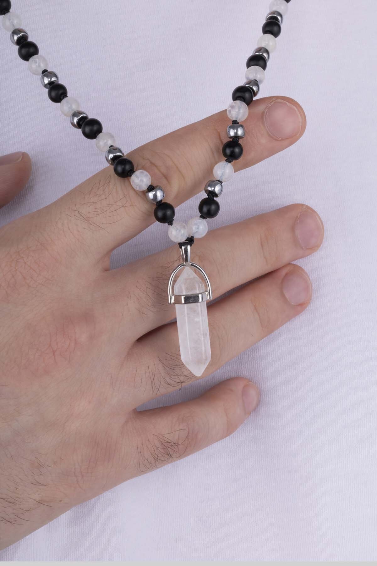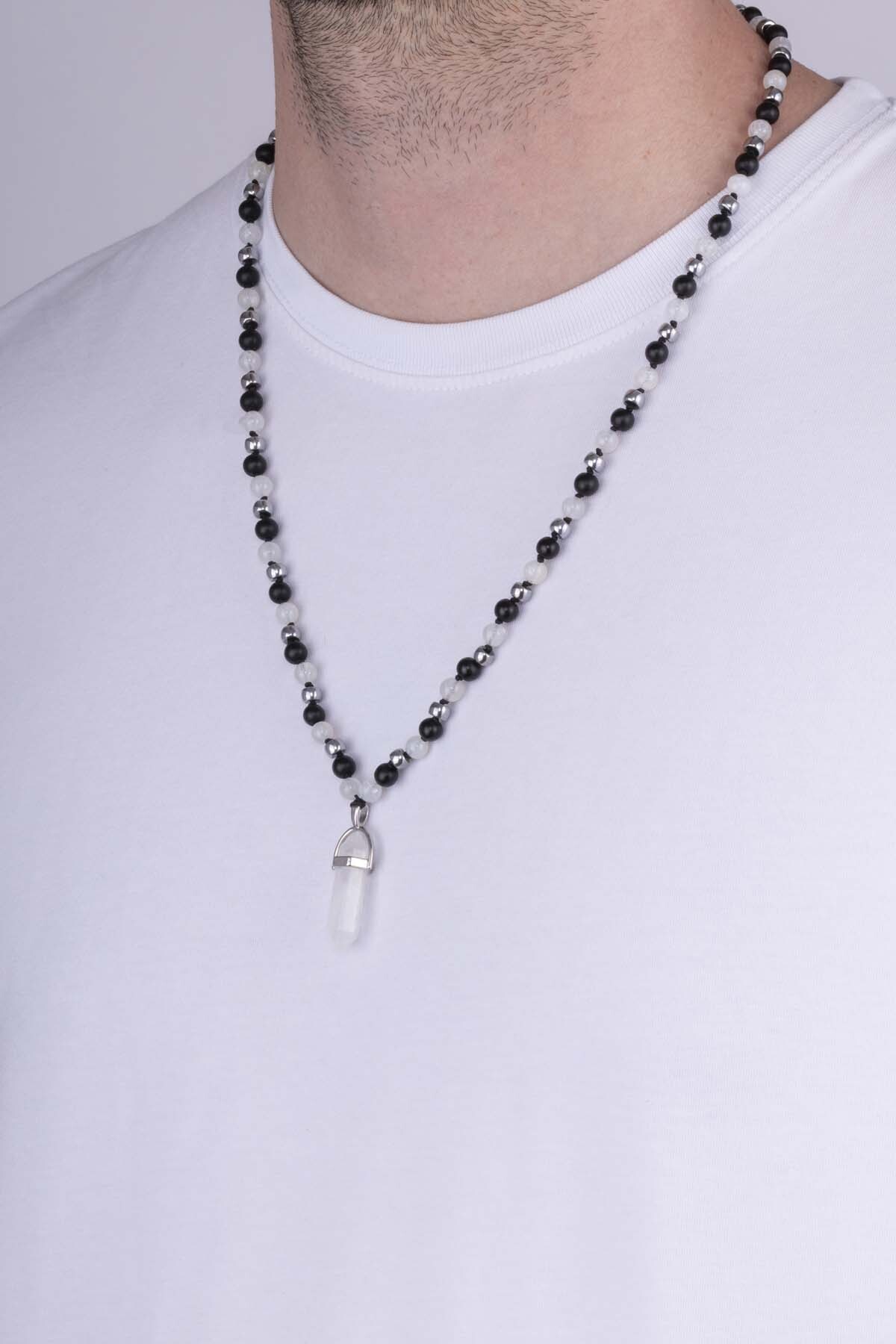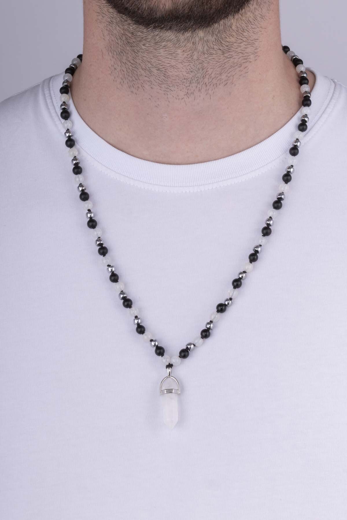 Gelince Haber VerOniks ve Tibet akik taşlarının zarif birleşiminden oluşan bu erkek kolye, güçlü enerjisi ve sofistike tasarımıyla dikkat çeker. Siyah oniks taşlarının asaleti ile Tibet akik taşlarının beyaz ve gri tonlarının uyumu, modern ve kontrastlı bir görünüm kazandırır.