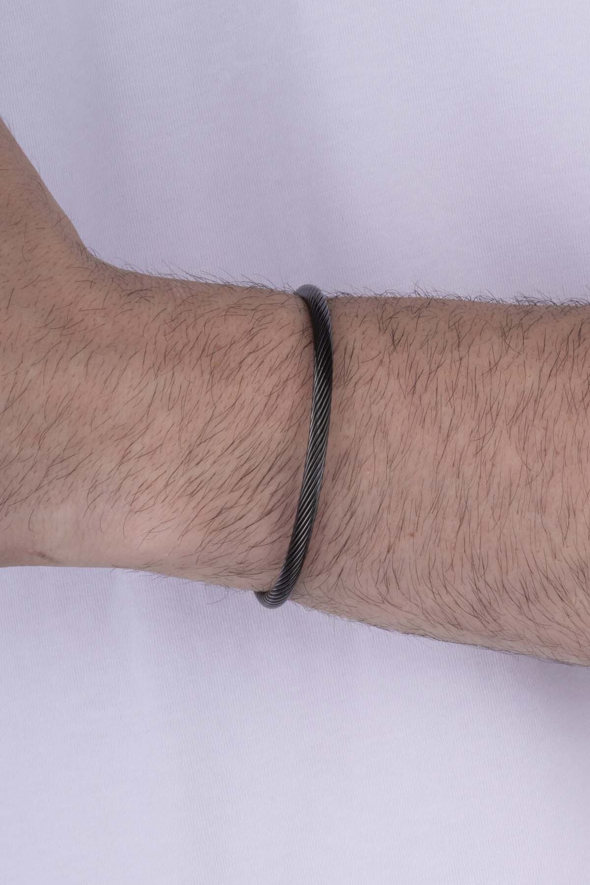 Örgü Model Siyah Çelik Erkek Kelepçe Bileklik - 3