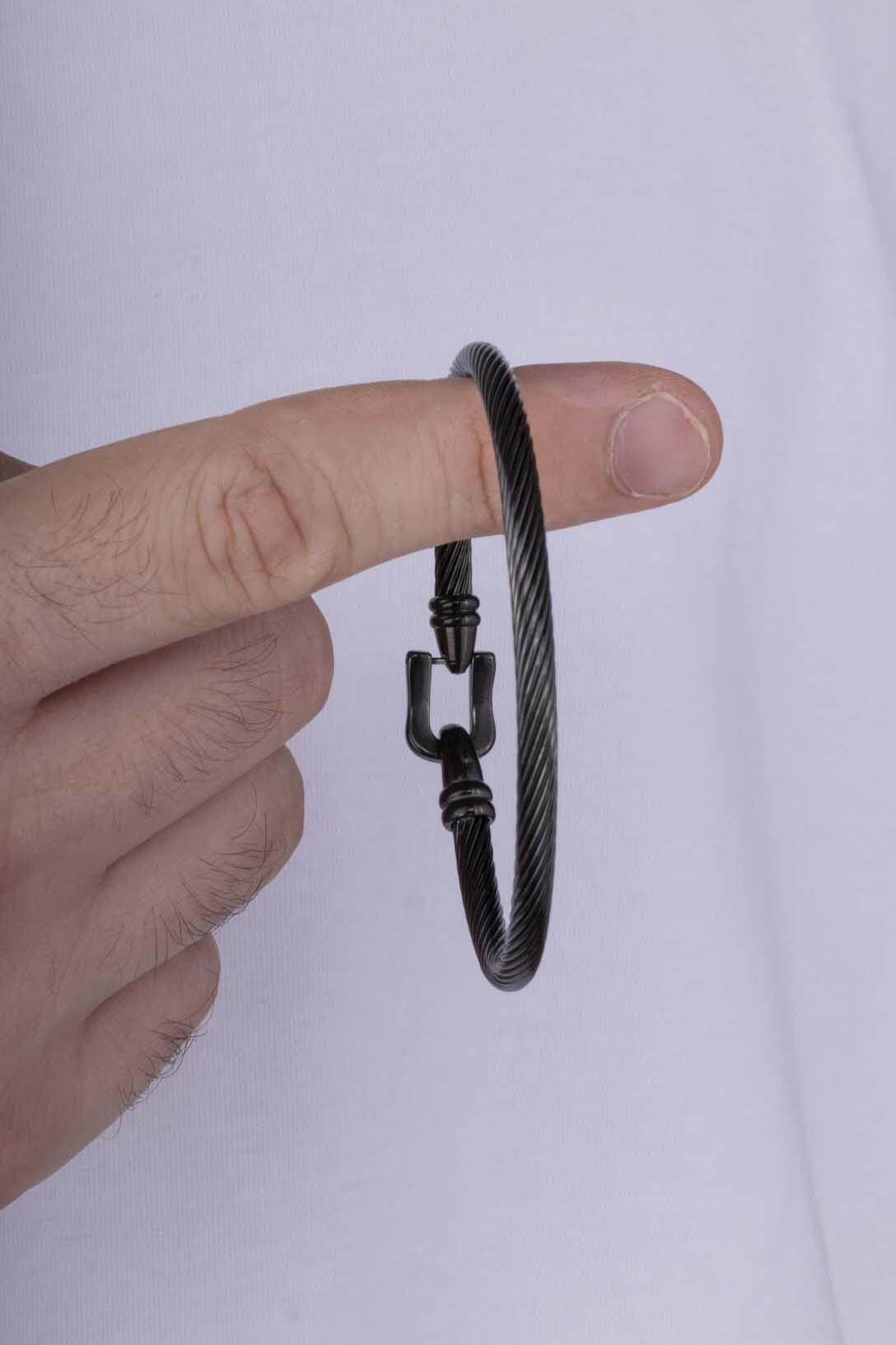 Örgü Model Siyah Çelik Erkek Kelepçe Bileklik - 2