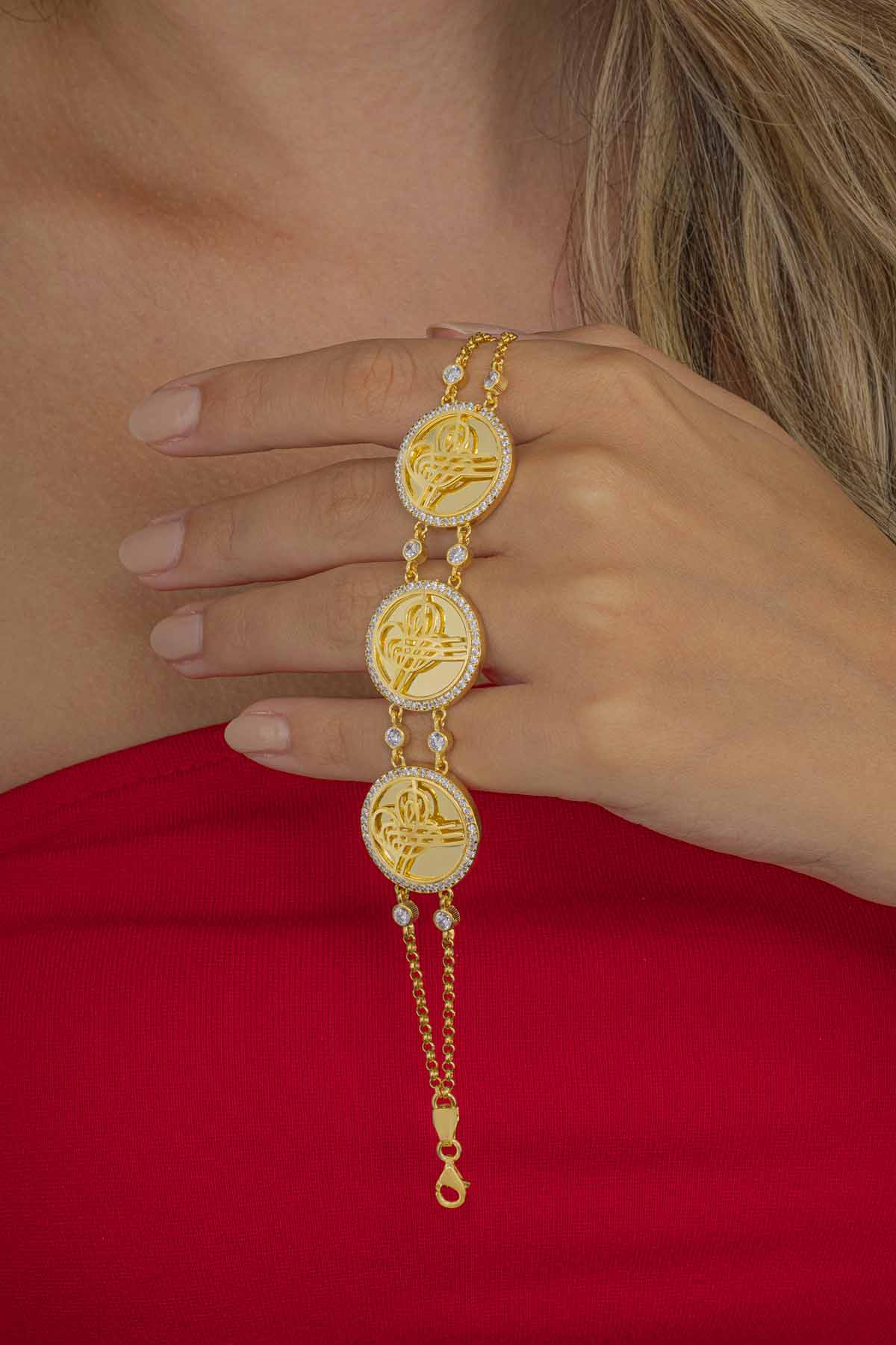 Osmanlı döneminde tuğra, padişahların imzası olarak kullanılmıştır. Tuğralar genellikle resmi evraklarda, parasal birimlerde ve devlet mühründe kullanılmıştır. Aynı zamanda tuğra, takılarda da sıkça kullanılmıştır. Takılarda kullanılan tuğralar genellikle padişahın adını ve hükümdarlığını simgeler. Tuğra motifleri Osmanlı döneminde sadece padişahların kullanımıyla sınırlı kalmamıştır. Saray mensupları, devlet görevlileri ve hatta sıradan vatandaşlar da kendi tuğralarını kullanmıştır. Bu tuğralar genellikle mührümsü bir imza olarak değil, daha çok süsleme amacıyla kullanılmıştır. Tuğra ve takılar, Osmanlı'nın sanat anlayışının da bir yansımasıdır. Bu takılar genellikle altın ve değerli taşlarla süslenmiş, zarif ve gösterişli parçalardır. Osmanlı döneminde takılar, sosyal statünün ve zenginliğin bir göstergesi olarak da kullanılmıştır.