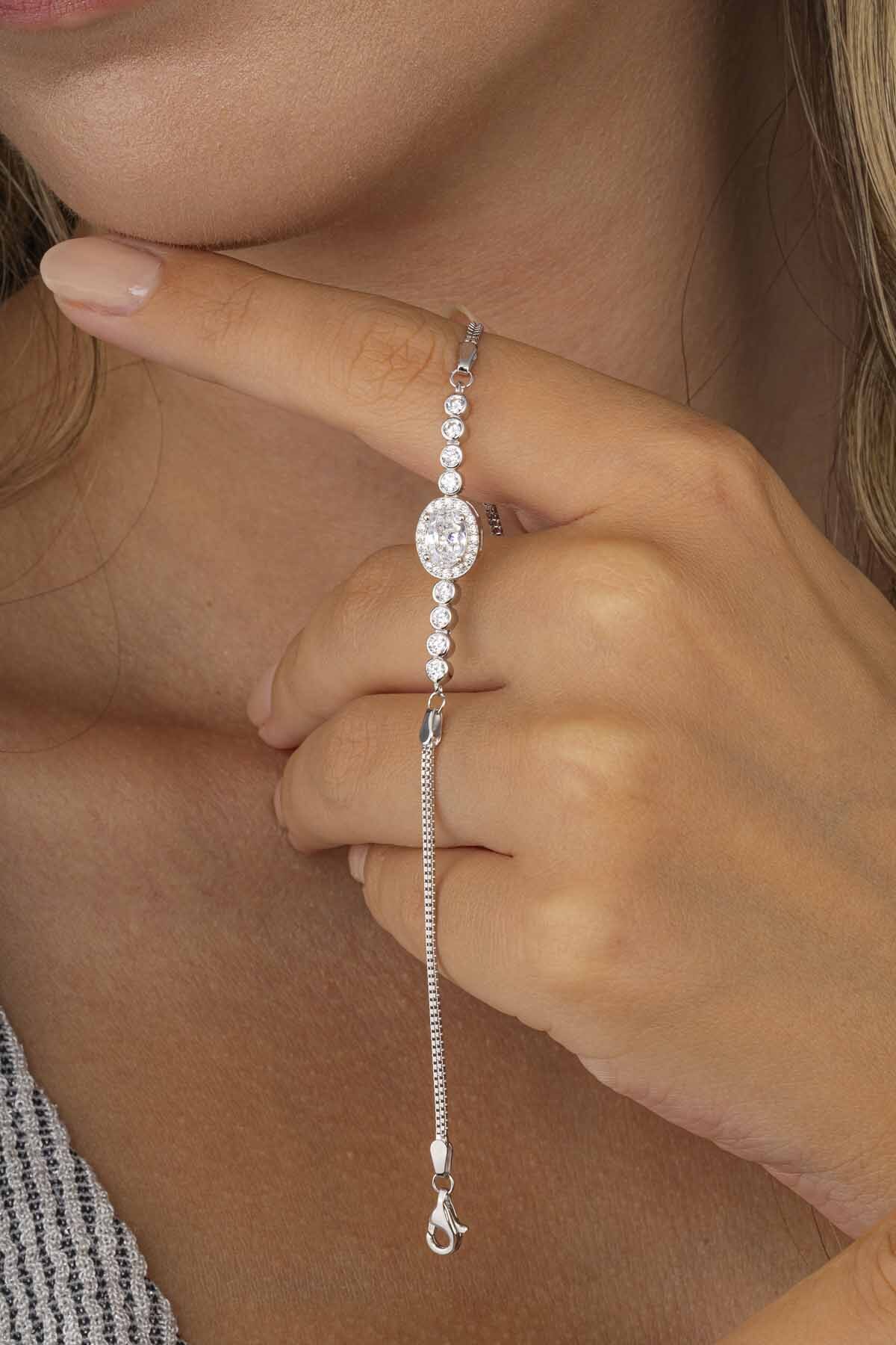 Oval Kesim Zirkon Taşlı 925 Ayar Gümüş Kadın Bileklik - 3