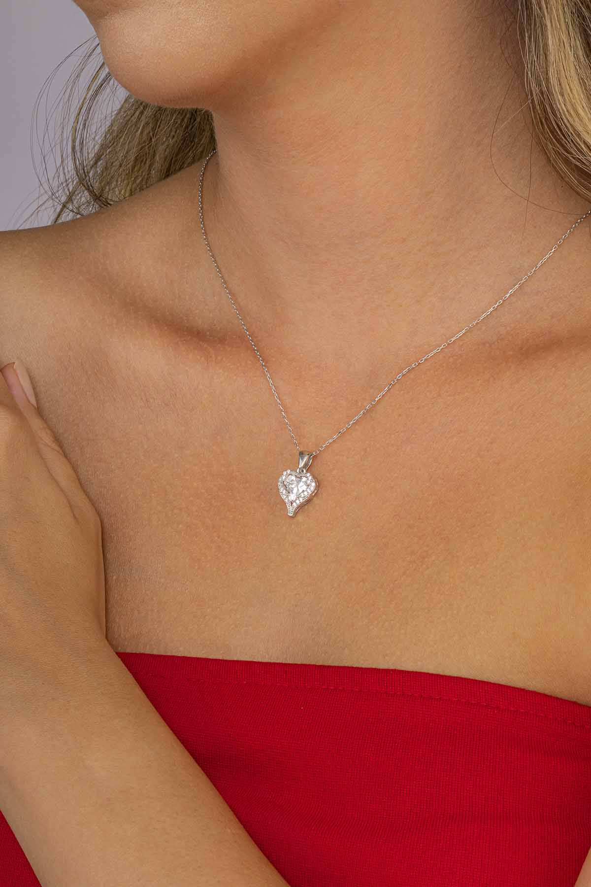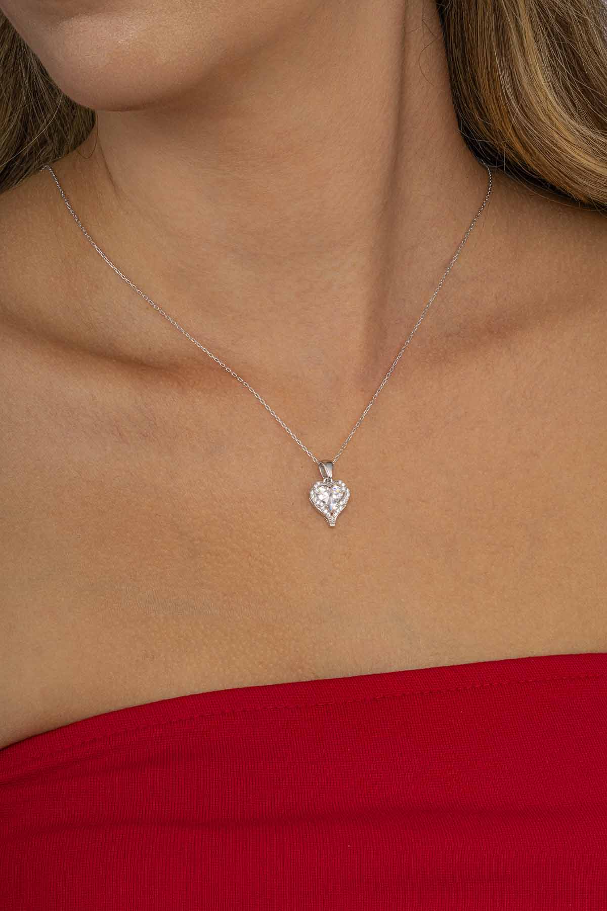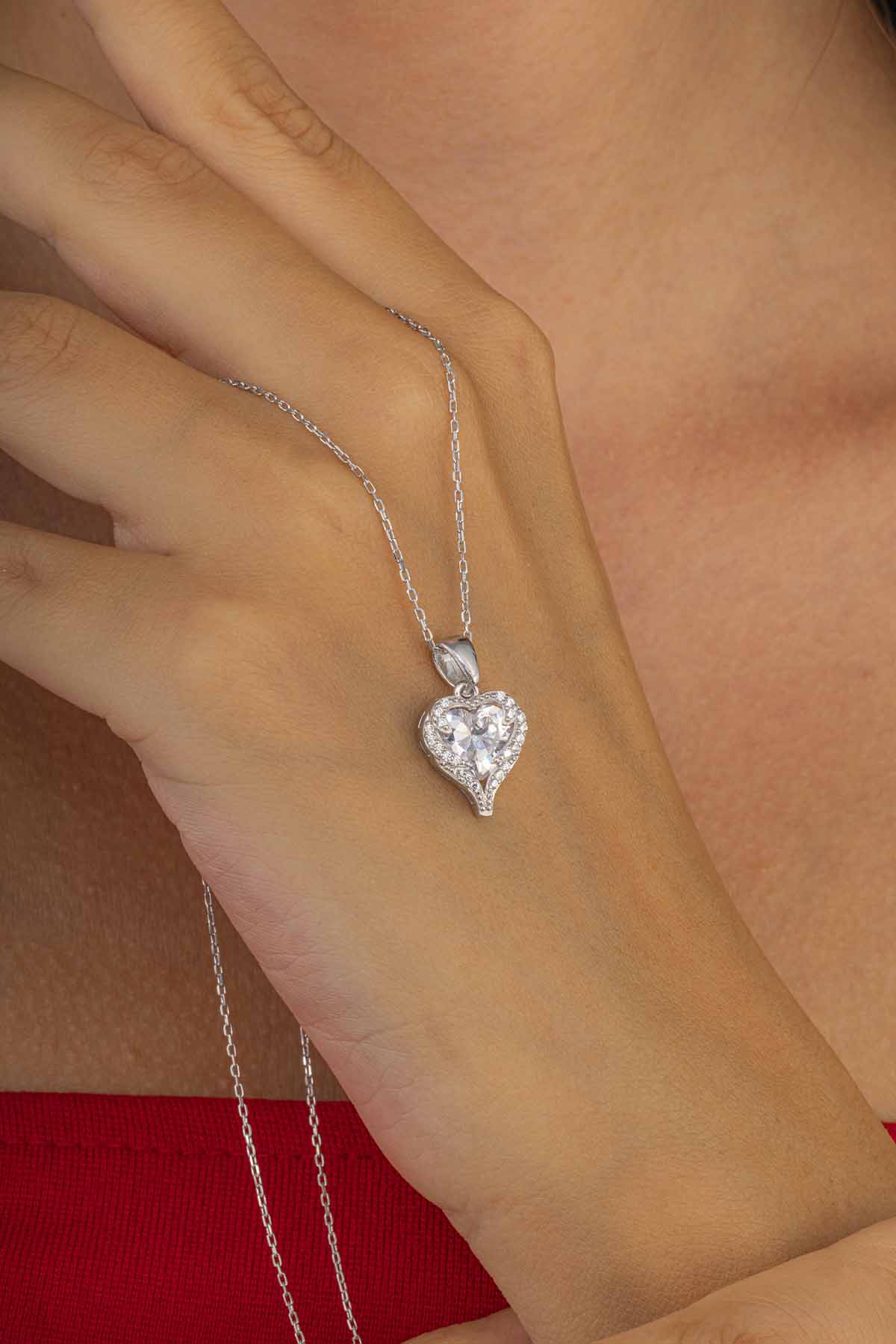 Parlak taşlarla süslenen kalp formu, her kombininize zarif bir ışıltı katacak. Günlük kullanım için konforlu yapısıyla öne çıkan bu kolye, 925 ayar gümüşün dayanıklılığı sayesinde uzun yıllar güvenle kullanılabilecek değerli bir parçadır.