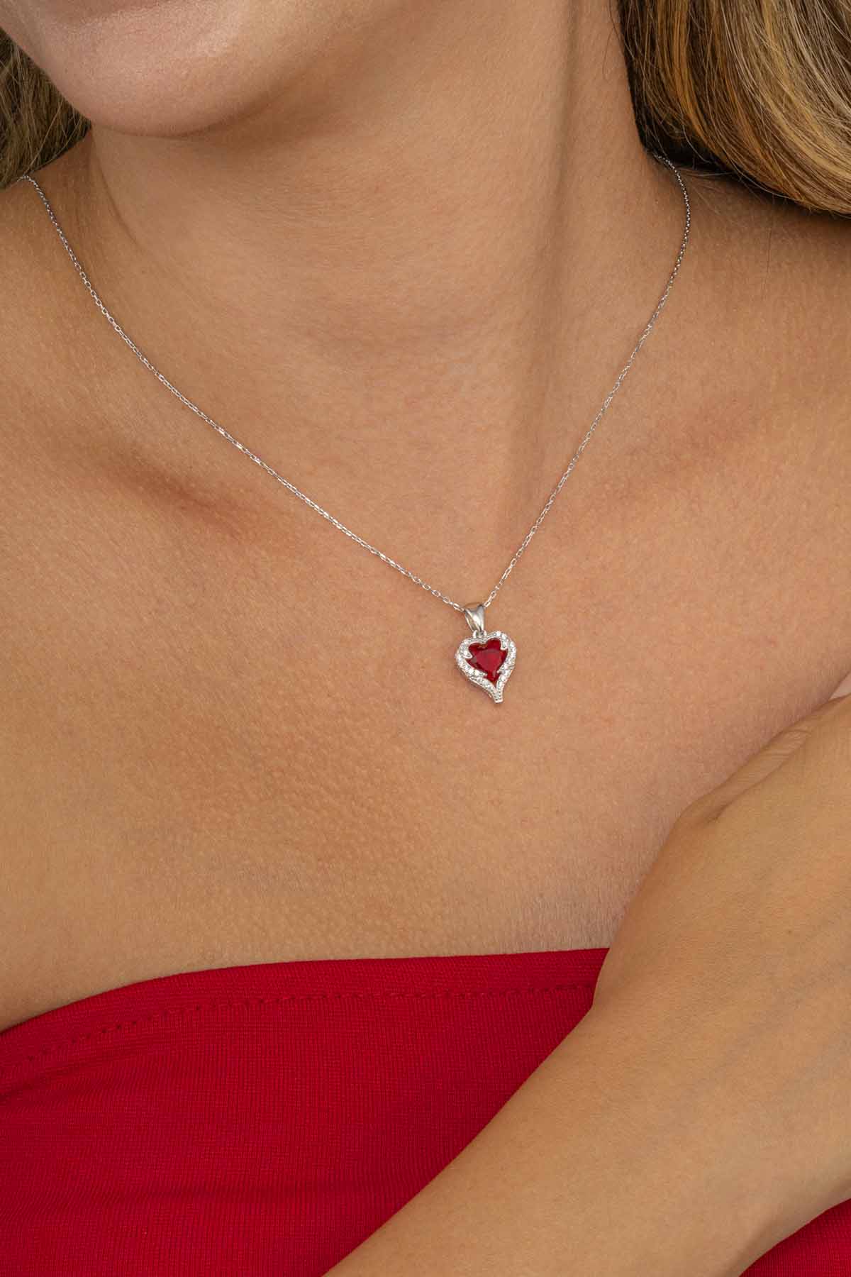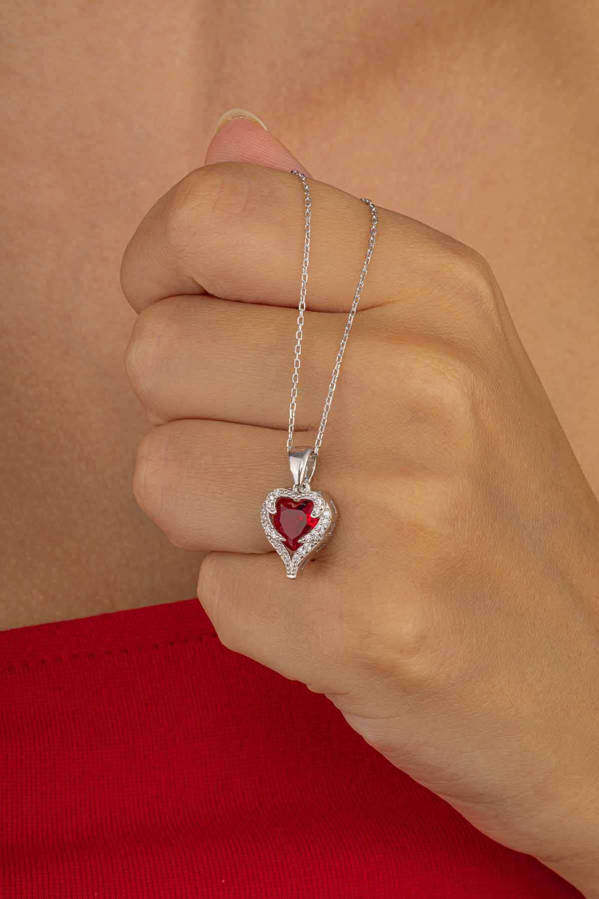 “Tutkunun ve aşkın en güçlü sembolü olan bu kırmızı taşlı özel tasarım kalp kolye, günlük şıklığınıza zarafet ve duygusal bir derinlik katacak.”