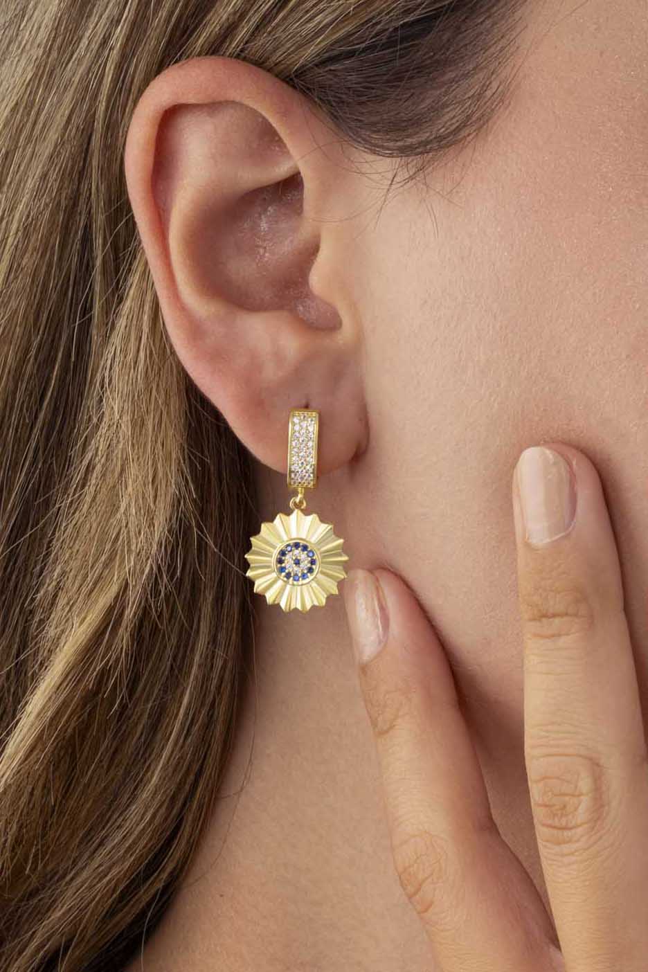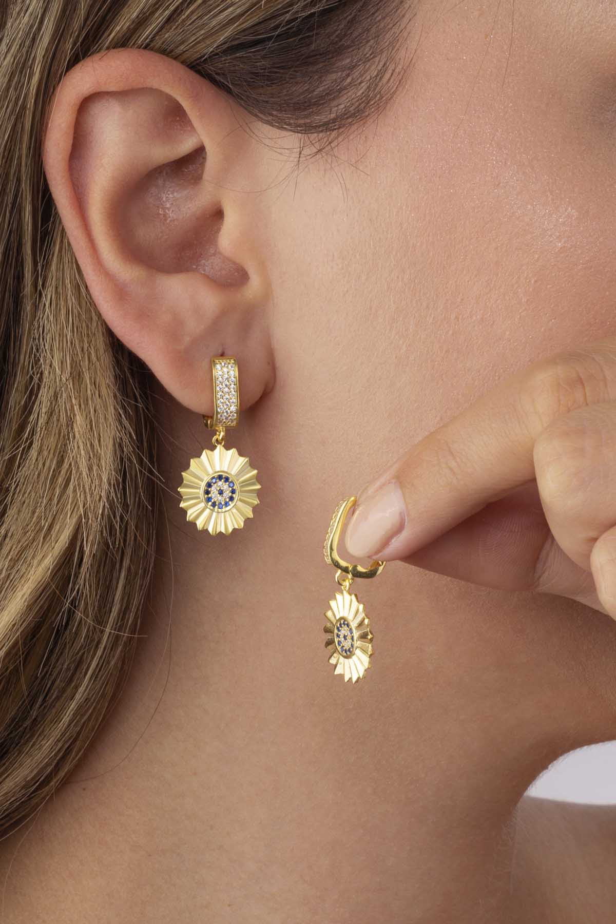 Özel Tasarım Nazar Boncuklu Altın Kaplama Gümüş Küpe - 2