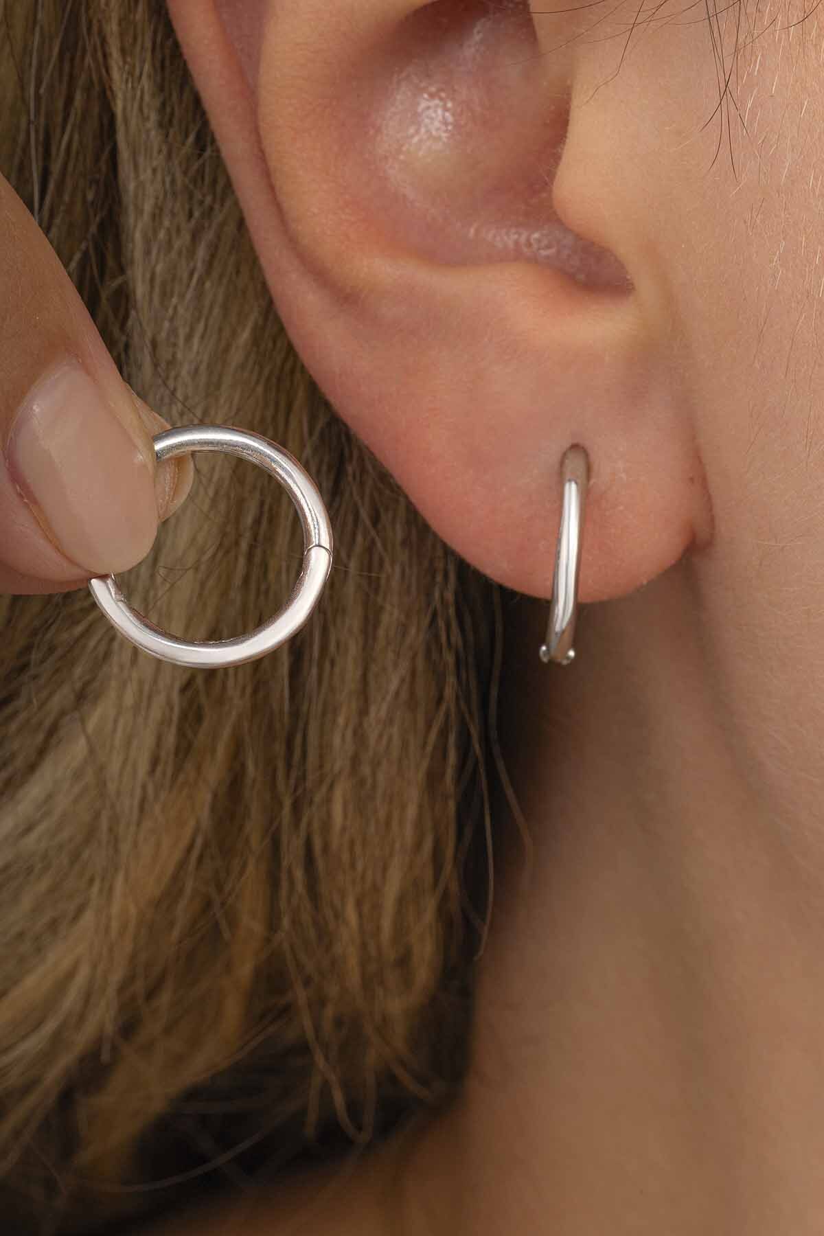 Parlak Model Halka Kadın Gümüş Küpe - 3