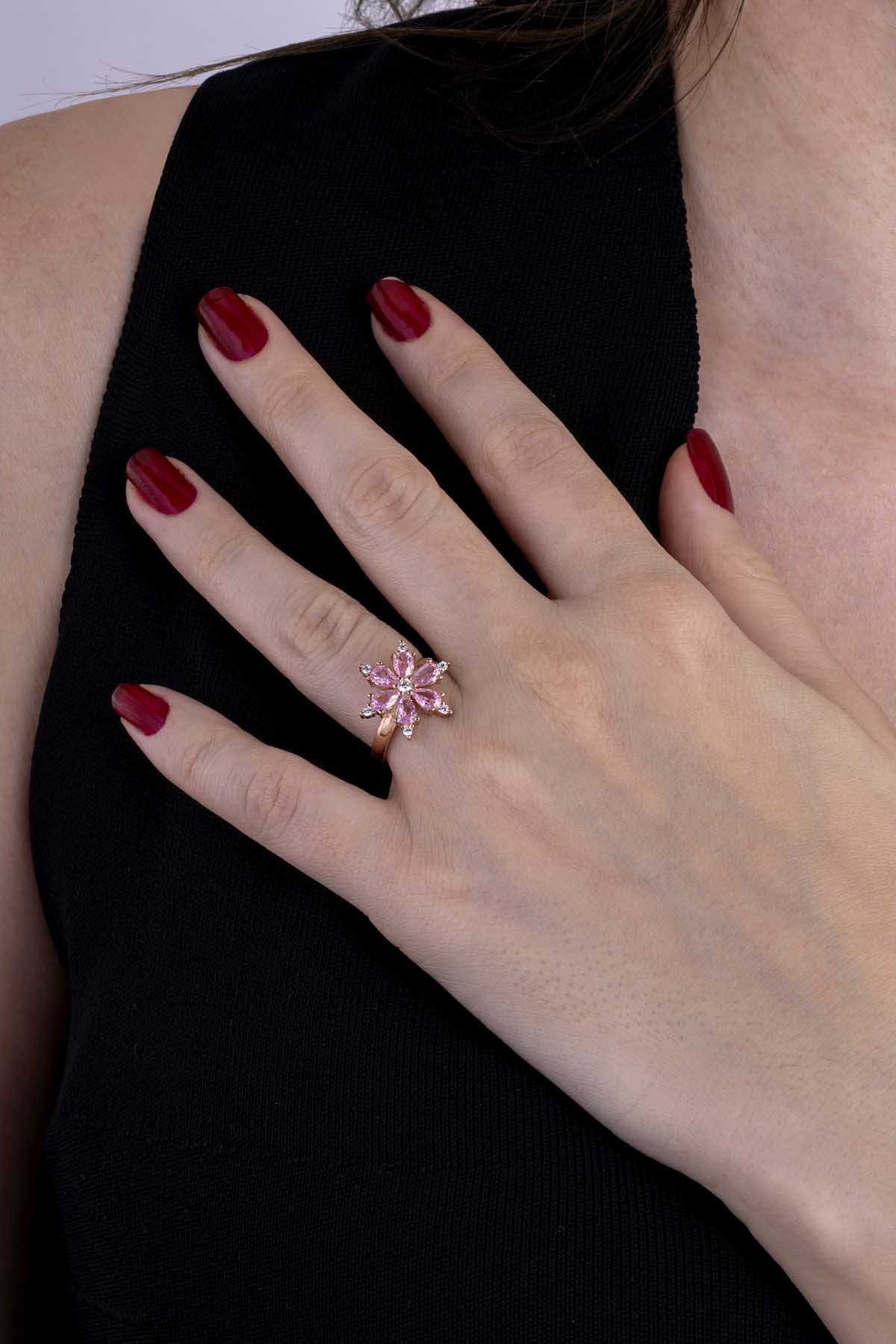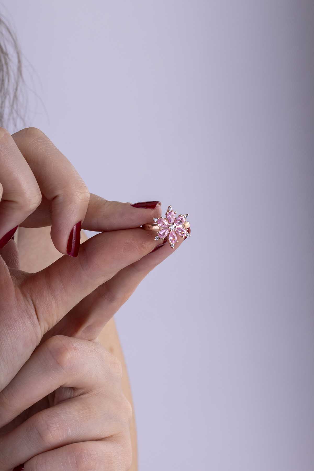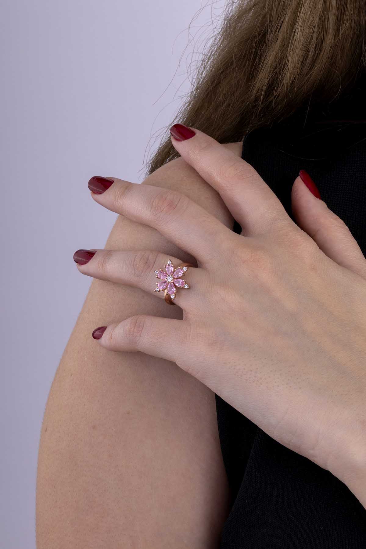 Pembe Taşlı Aster Çiçeği Gümüş Yüzük - 3