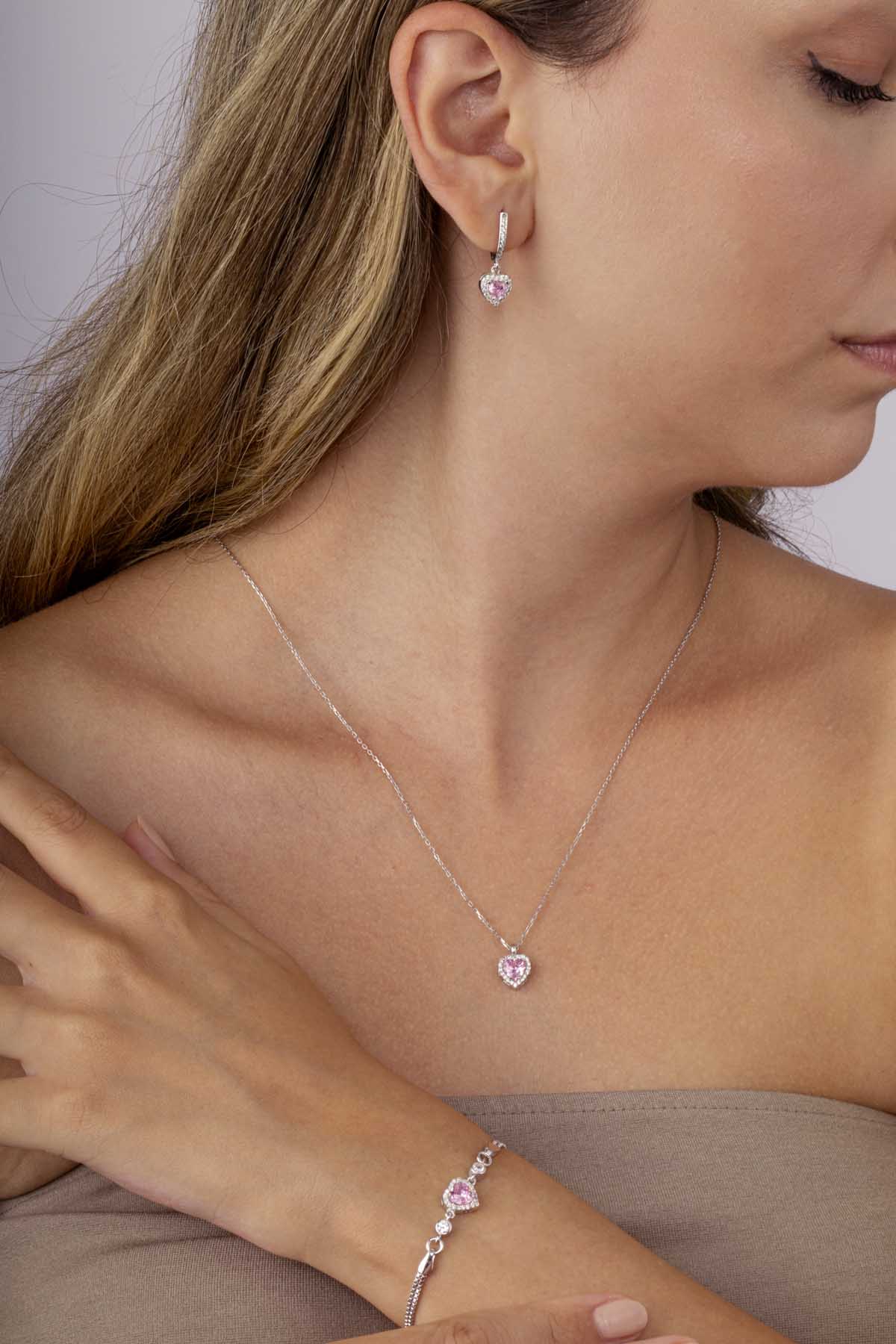 Her biri özenle tasarlanmış olan küpe, kolye ve bileklik, hem günlük kombinlerinize romantik bir dokunuş katar hem de özel günlerde şıklığınızı ön plana çıkarır. Sevgiyi simgeleyen kalp motifi sayesinde bu kombin, sevdiklerinize hediye edebileceğiniz en özel seçeneklerden biridir. Kendiniz için zamansız bir şıklık ya da sevdiklerinize unutulmaz bir armağan arıyorsanız, bu 925 ayar gümüş kalp takı seti ideal bir seçimdir.