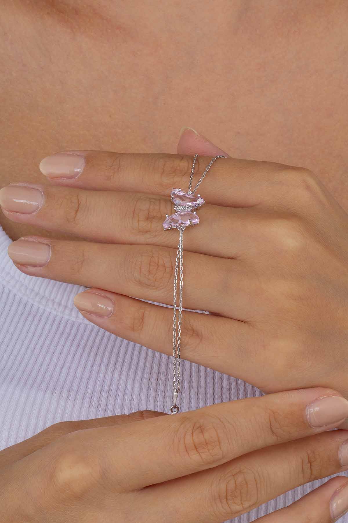Pembe Taşlı Kelebek Gümüş Bileklik - 2