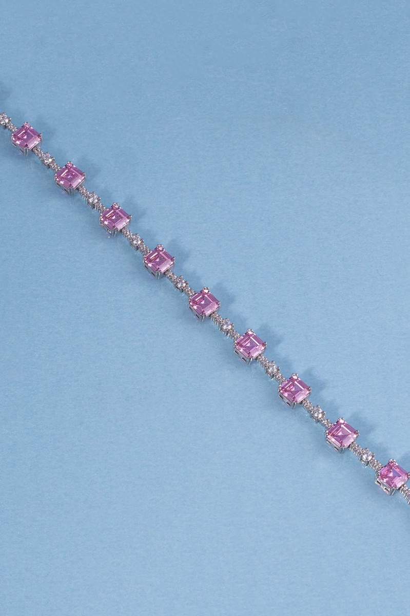 Pembe Taşlı Sıralı Su Yolu Gümüş Bileklik - 1