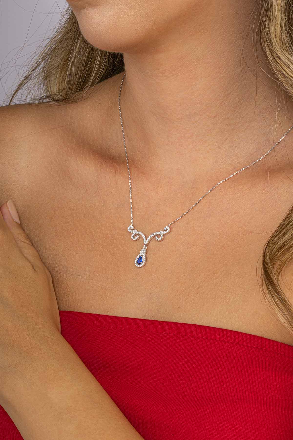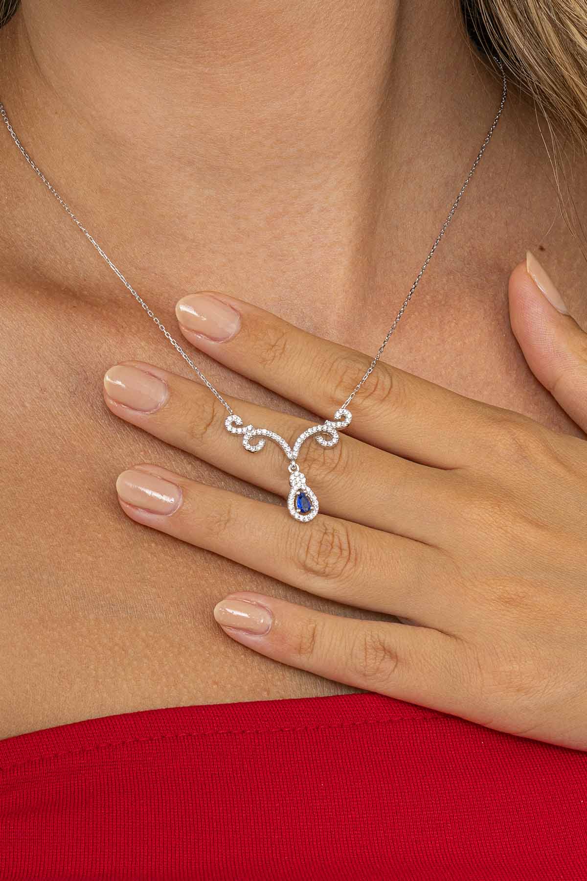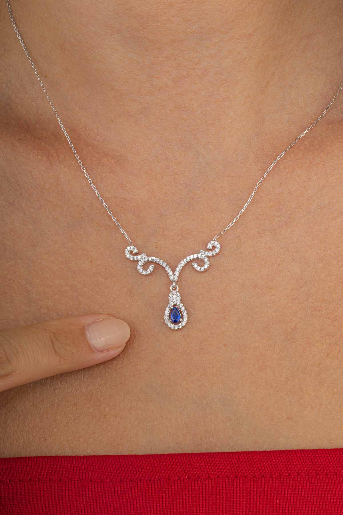 Asaletin ve zarafetin simgesi olan 925 ayar gümüş damla safir taşlı su yolu kolye, özel günlerde şıklığınızı taçlandıran büyüleyici bir parça.
