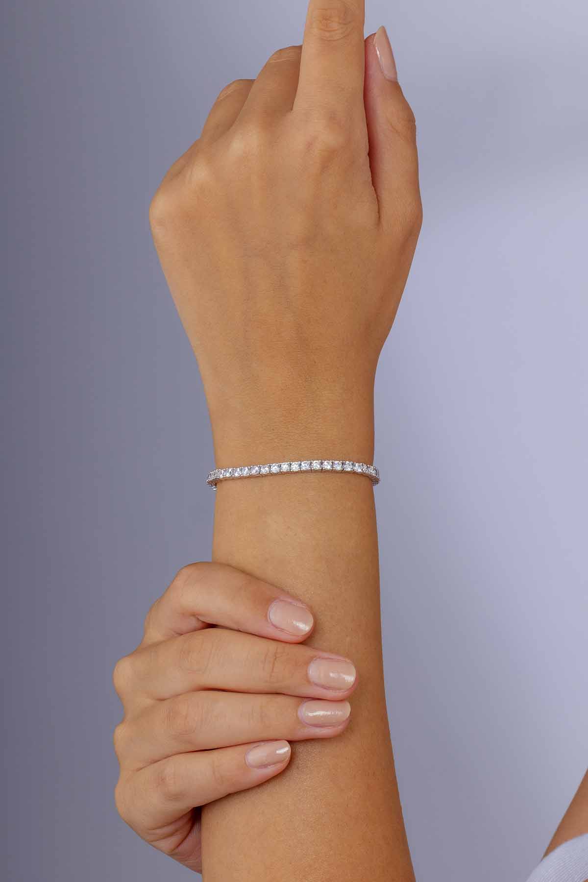 Pırlanta Montür 4 Tırnaklı Su Yolu Gümüş Bileklik - 2